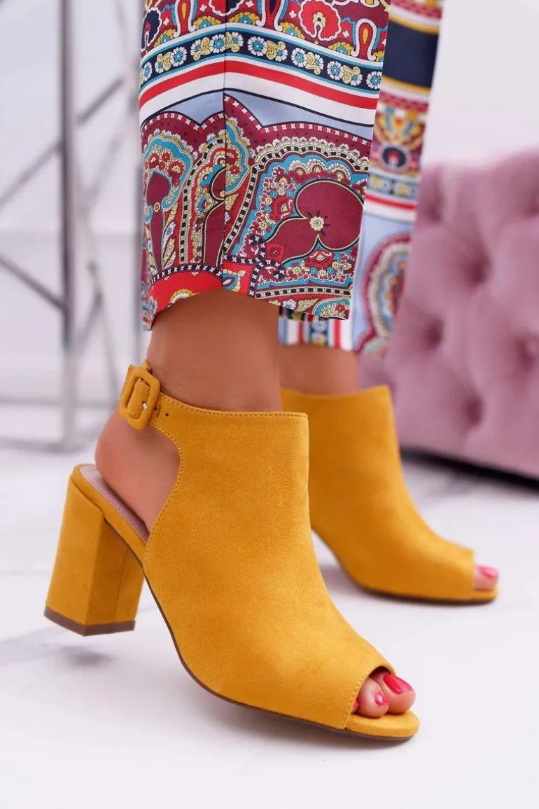 Sandały Damskie Na Słupku Z Cholewką Peep Toe Żółte Esta