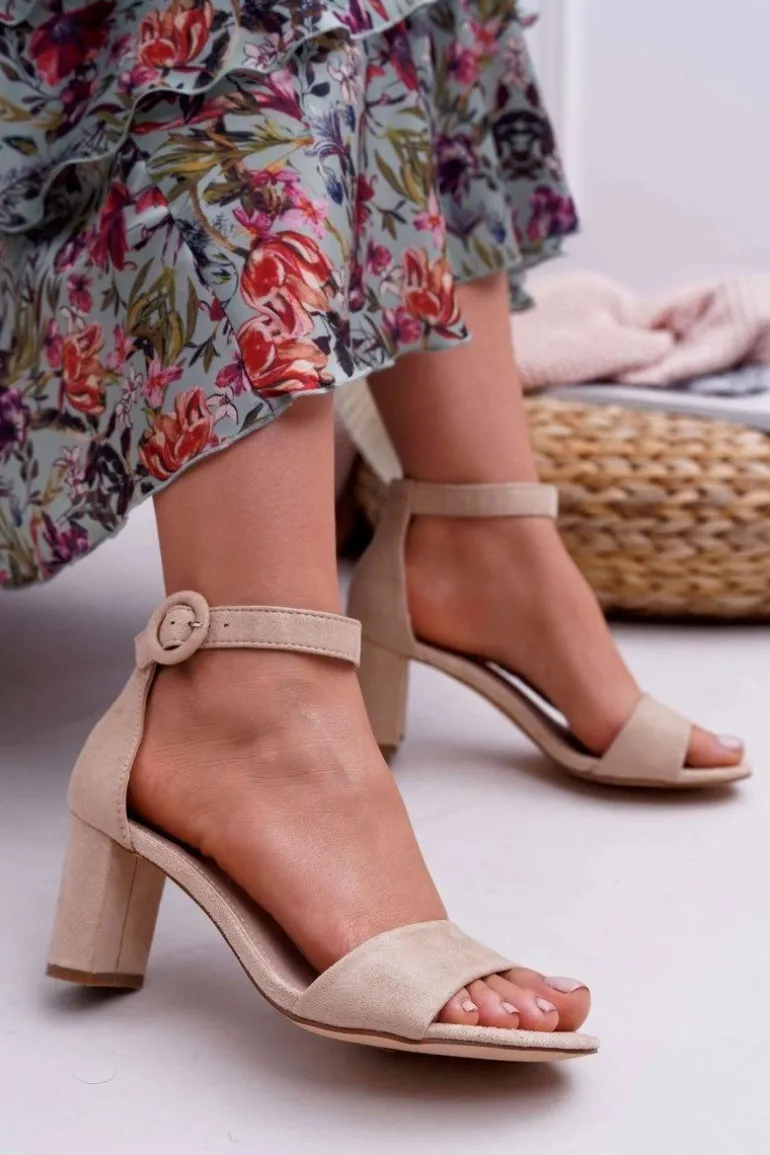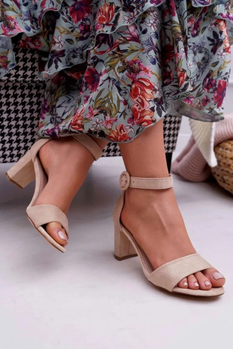 Sandały Damskie Na Słupku Zamszowe Beżowe Lexi