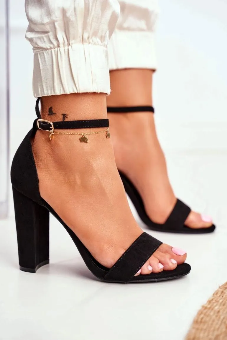 Sandały Damskie Na Słupku Zamszowe Czarne Anastasie
