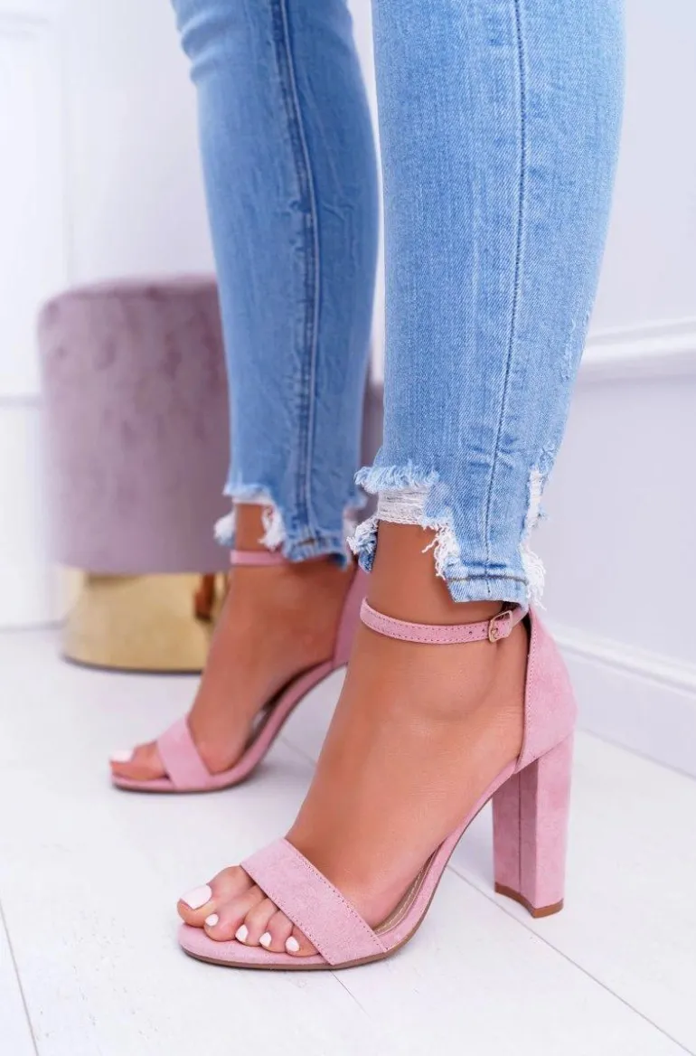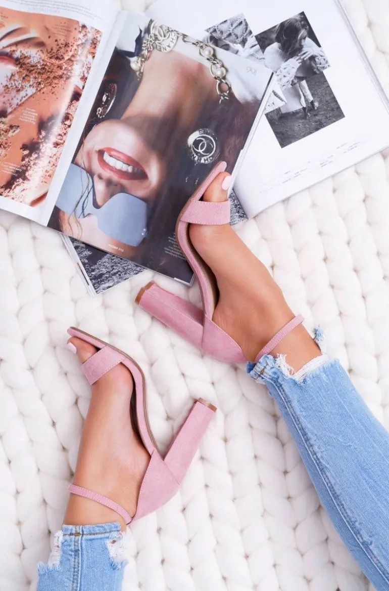 Sandały Damskie Na Słupku Zamszowe Różowe Anastasie