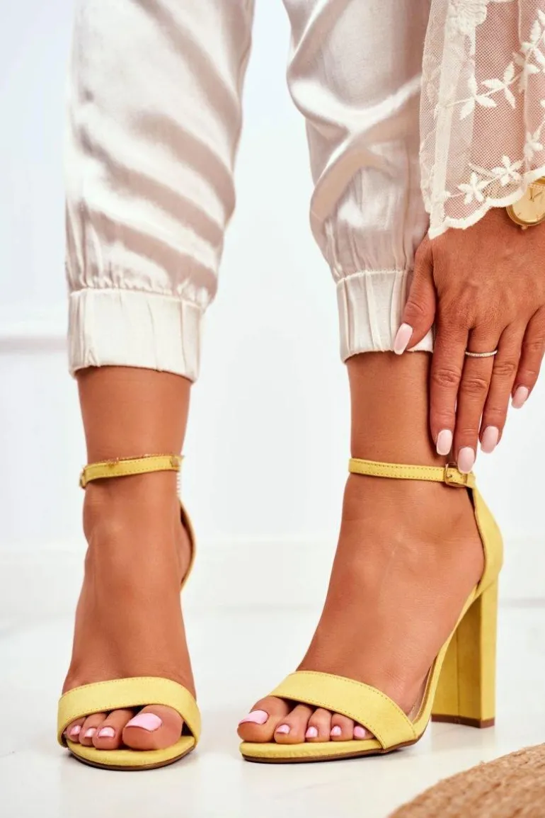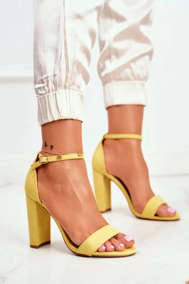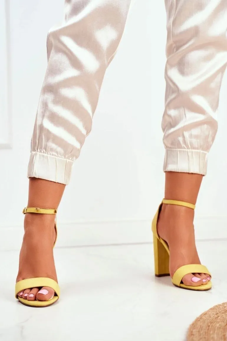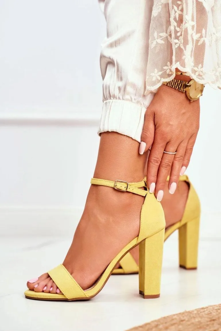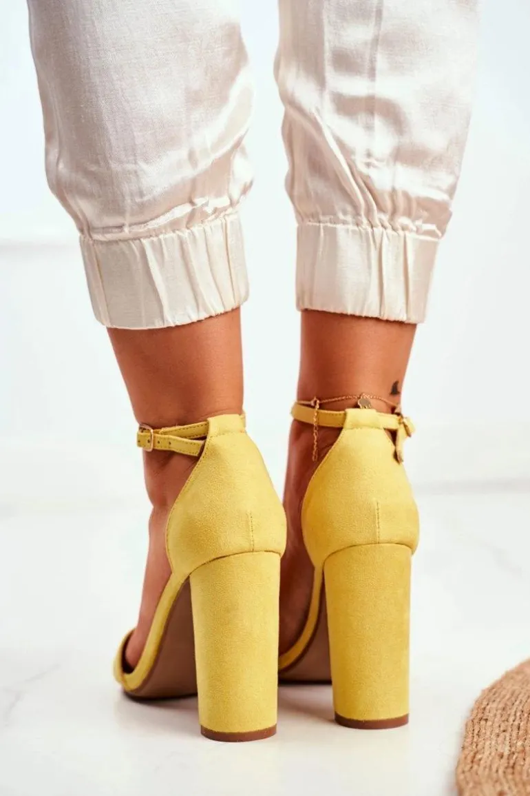 Sandały Damskie Na Słupku Zamszowe Żółte Anastasie
