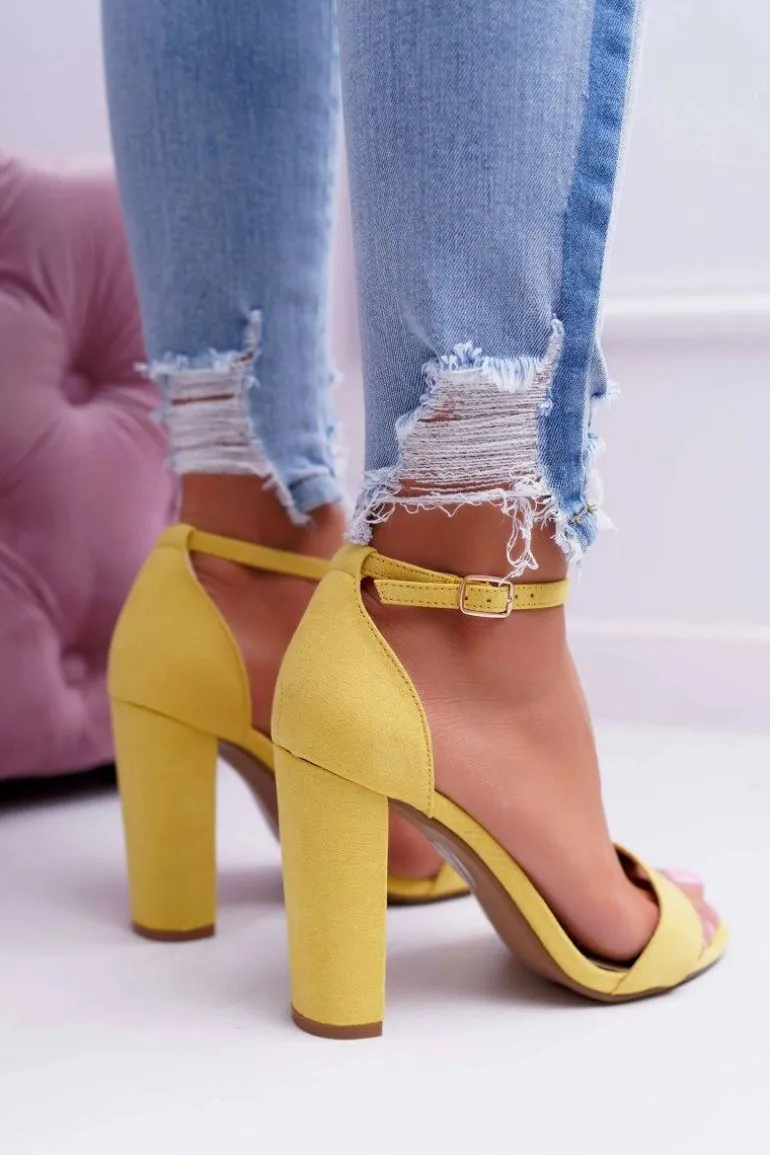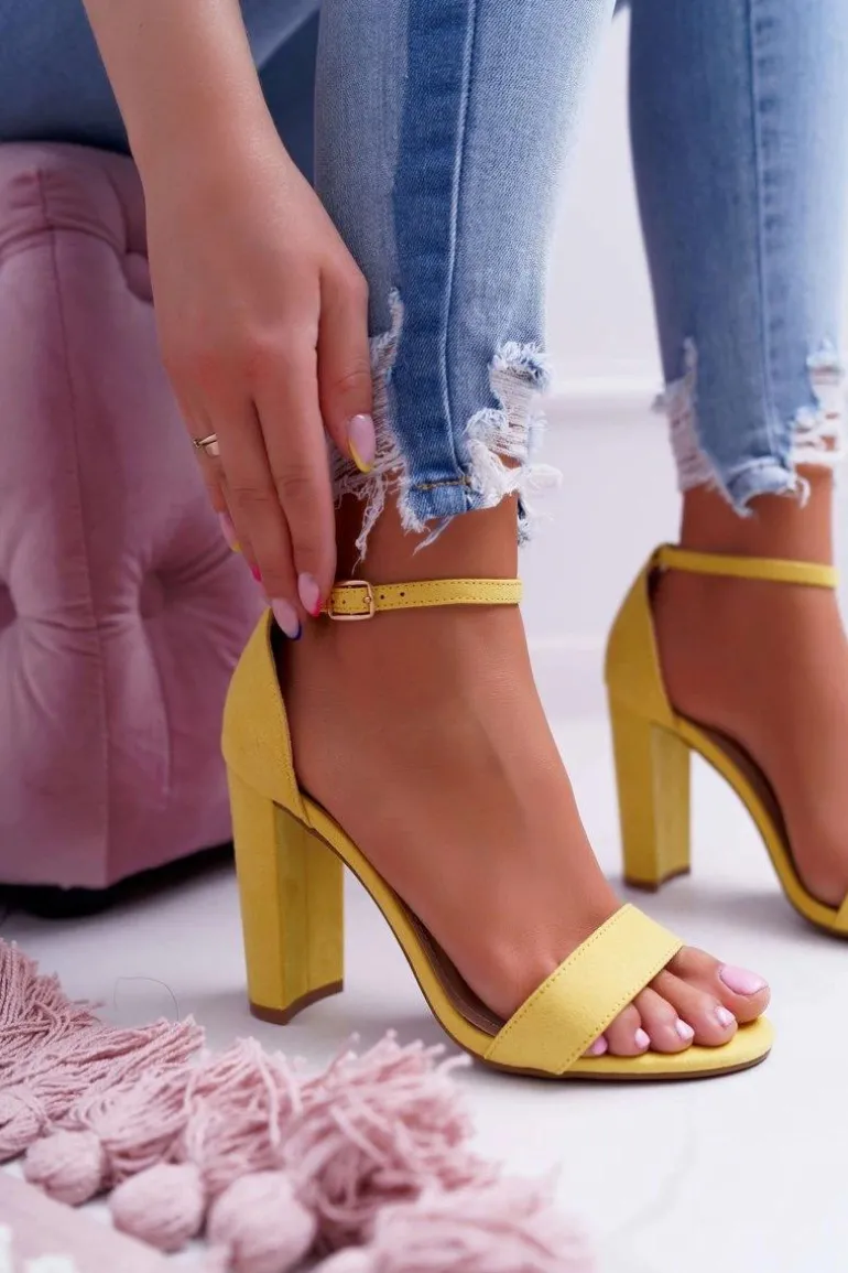 Sandały Damskie Na Słupku Zamszowe Żółte Anastasie