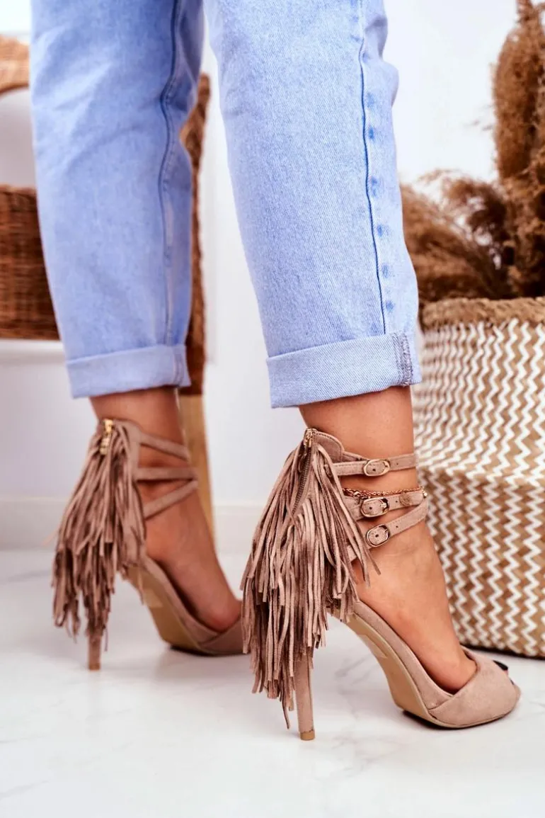 Sandały Damskie Na Szpilce Gladiatorki Beżowe Carnival
