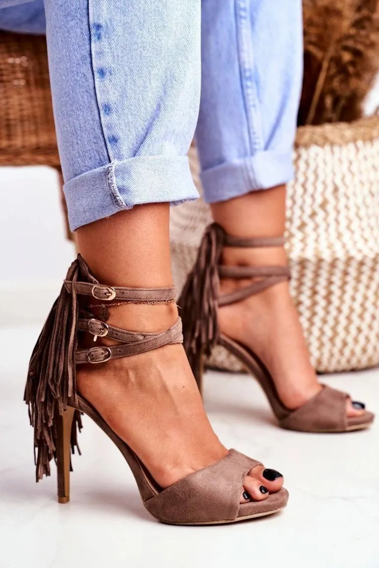 Sandały Damskie Na Szpilce Gladiatorki Taupe Carnival