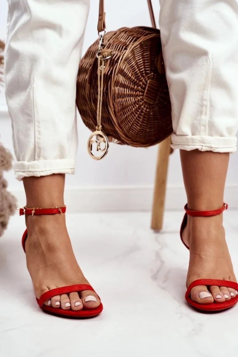 Sandały Damskie Na Szpilce Klasyczne Pomarańczowe Mintore
