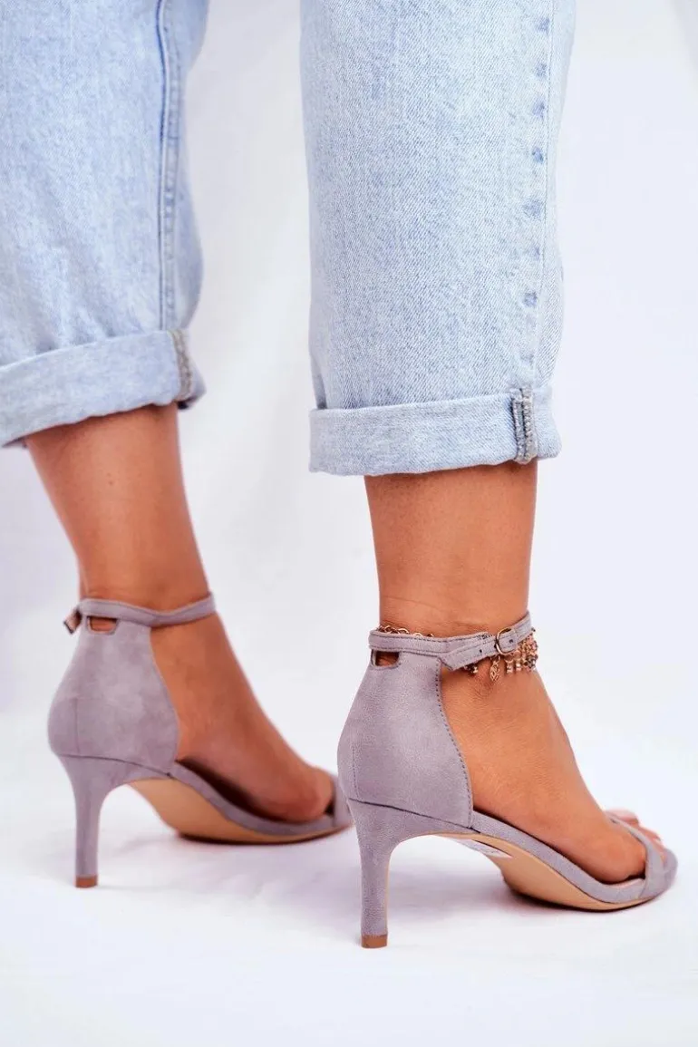 Sandały Damskie Na Szpilce Klasyczne Szare Mintore