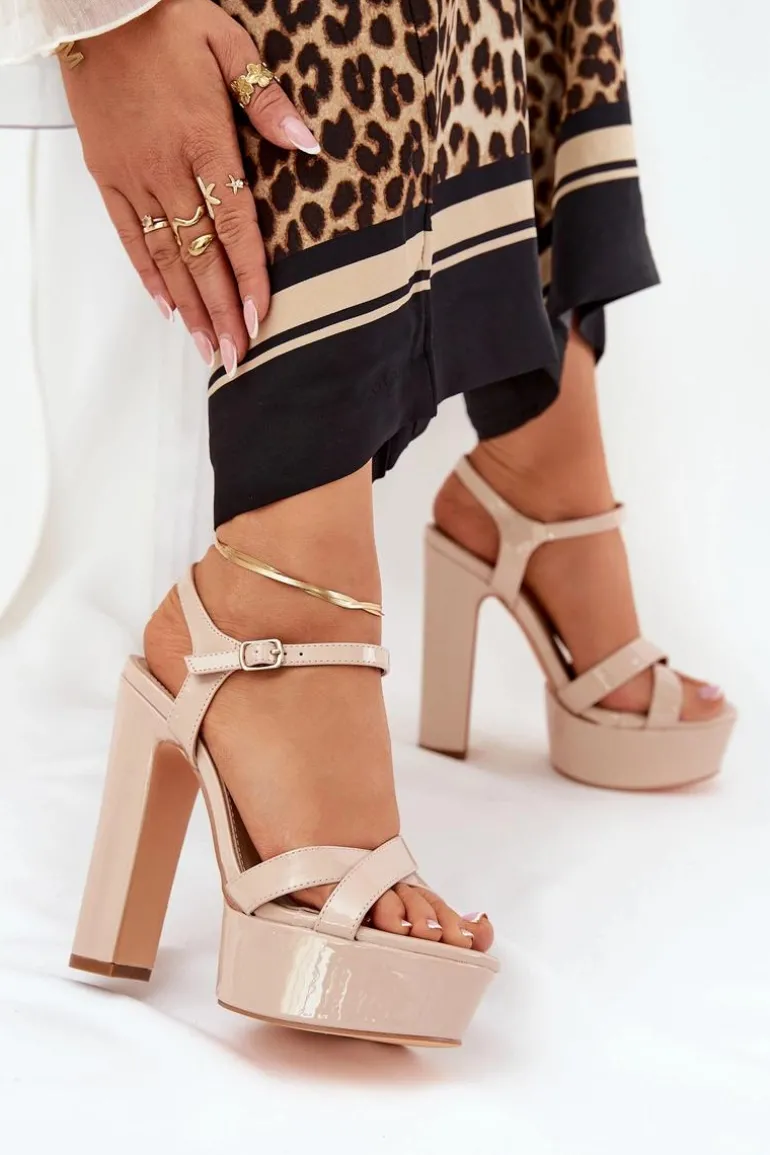 Stylowe sandały damskie na wysokim obcasie słupku i platformie, które łączą elegancję z wygodą. Z przodu dwa przeplatające się paseczki. Zapinane wokół kostki na sprzączkę z regulowanym paskiem, co pozwala na idealne dopasowanie do stopy. Te sandały będą doskonałym wyborem na różne okazje oraz wieczorne wyjścia. Przy wyborze rozmiaru prosimy sugerować się tabelą rozmiarów.