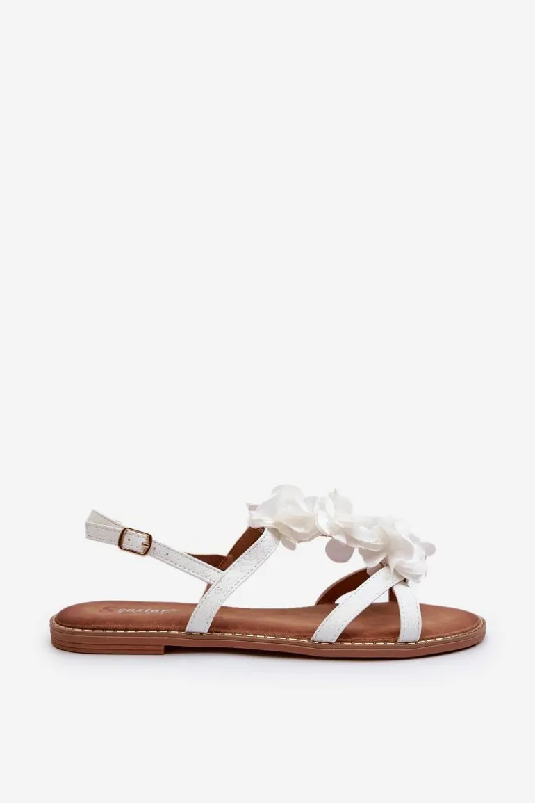 Sandały damskie delikatnie błyszczące to wyjątkowy dodatek do letniej garderoby. Kwiatowe detale nadają im lekkości i uroku. Idealnie będą współgrać z letnimi sukienkami, spódnicami lub spodniami. Dodatkowo płaski obcas zapewnia wygodę przez cały dzień. Przy wyborze rozmiaru prosimy sugerować się tabelą rozmiarów.