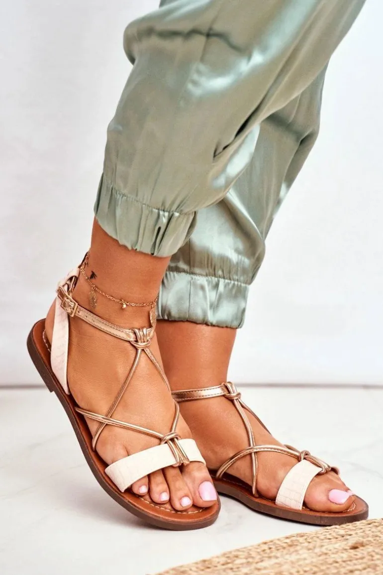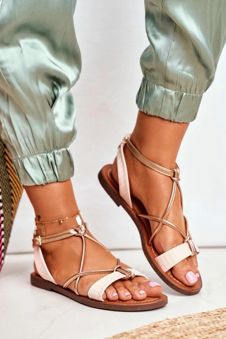 Sandały Damskie Płaskie Różowe Alison