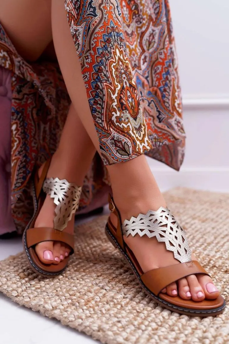 Sandały Damskie Płaskie Sergio Leone SK011 Camel Lirielle