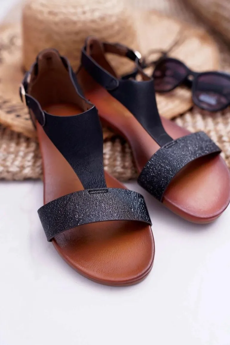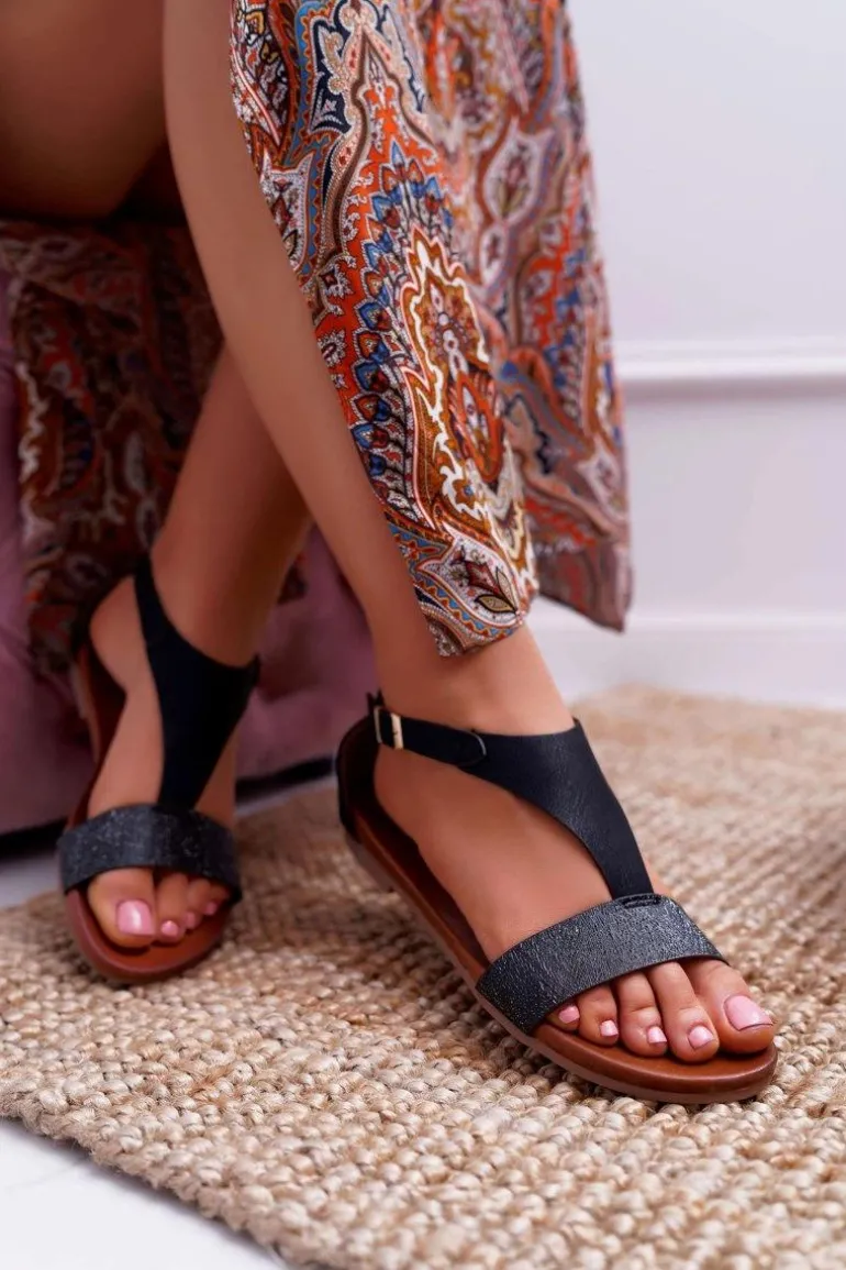 Sandały Damskie Płaskie Sergio Leone SK020 Czarne Magra