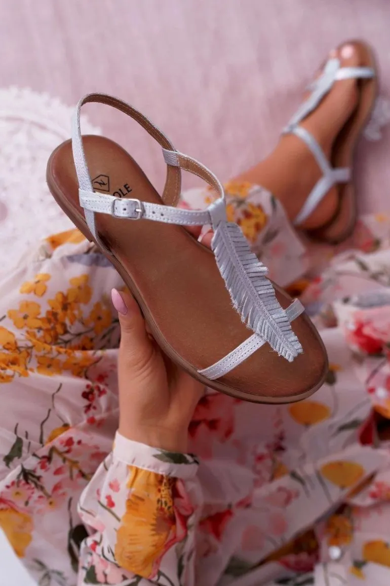 Sandały Damskie Płaskie Skórzane Srebrne Nicole 2383