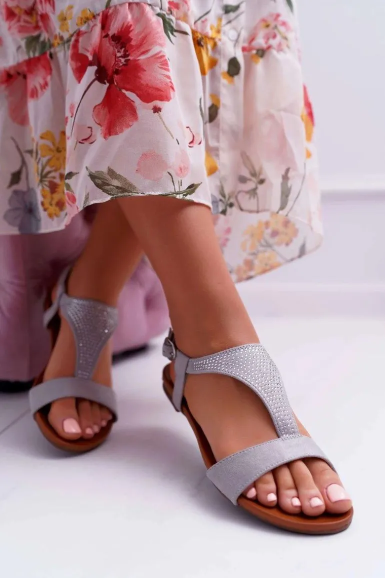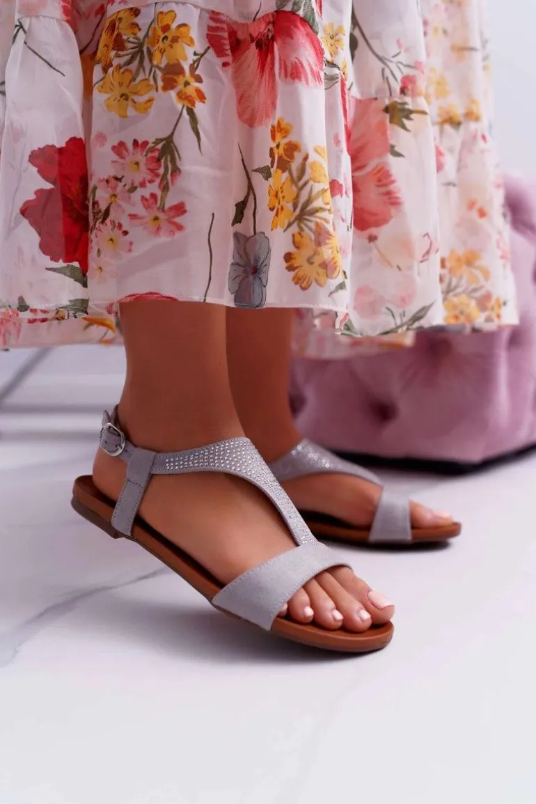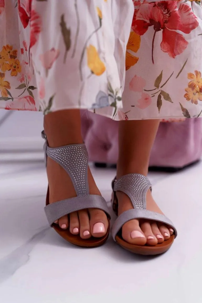 Sandały Damskie Płaskie Szare Sorsano