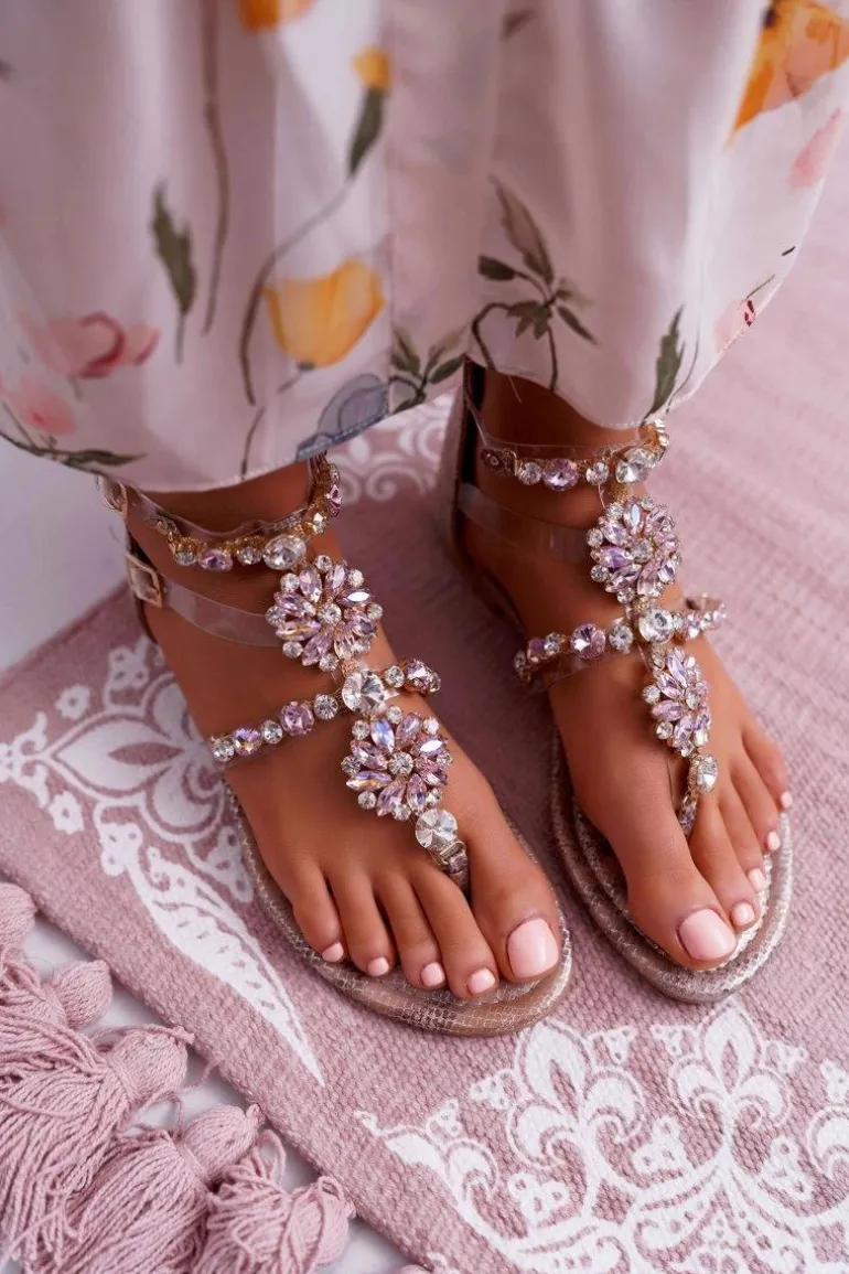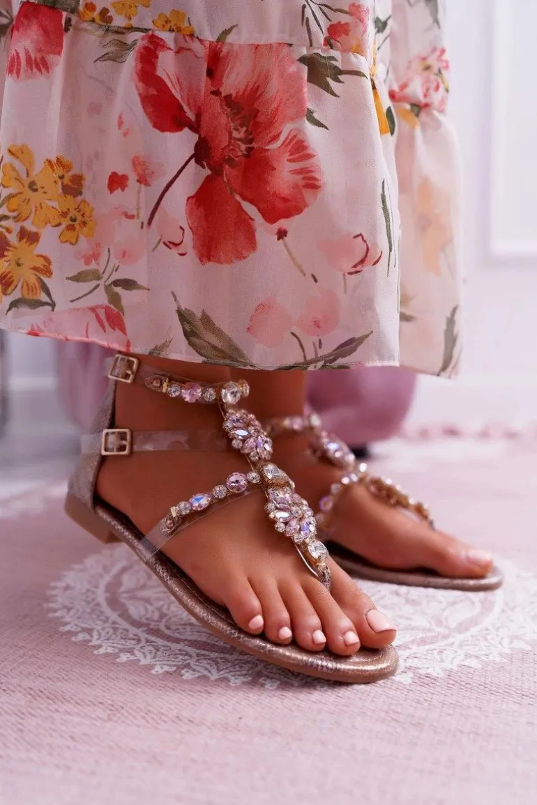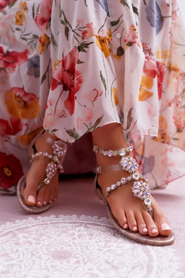 Sandały Damskie Płaskie Z Cyrkoniami Champagne Karra