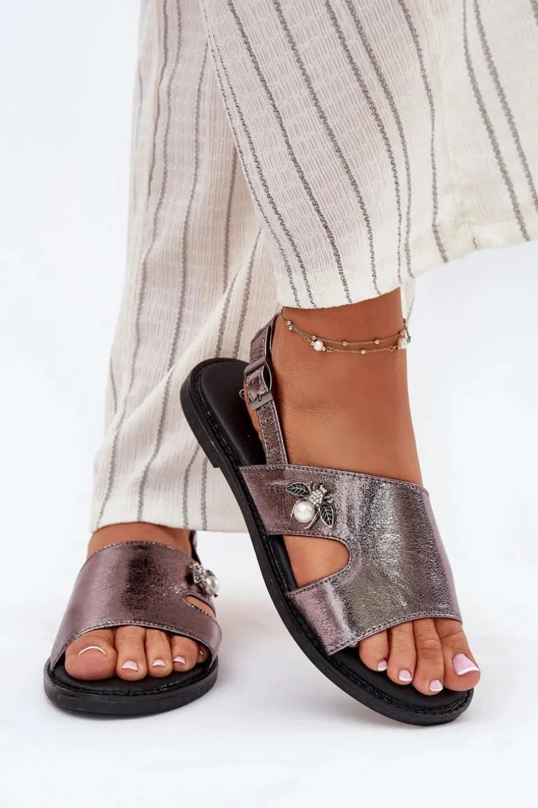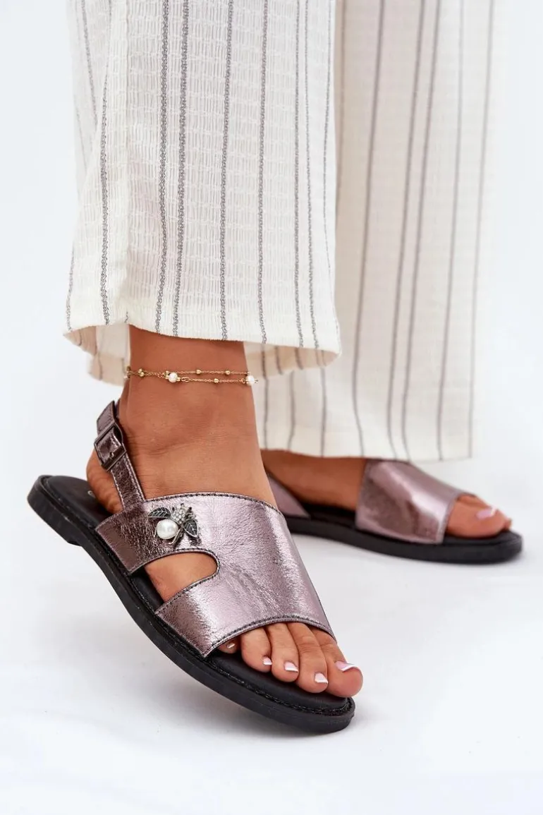 Sandały damskie marki Vinceza to połączenie stylu i wygody. Wykonane z wysokiej jakości eko skóry, zostały osadzone na płaskim obcasie, dzięki czemu świetnie sprawdzą się na co dzień. Zapinane na klamrę z regulowanym paskiem, umożliwiają idealne dopasowanie do stopy. Z przodu znajduje się ozdobny detal, który nadaje całości eleganckiego charakteru. Miękka, skórzana wkładka zapewnia komfort podczas noszenia przez cały dzień. Idealne na letnie spacery i codzienne stylizacje! Przy wyborze rozmiaru prosimy kierować się tabelą rozmiarów.
