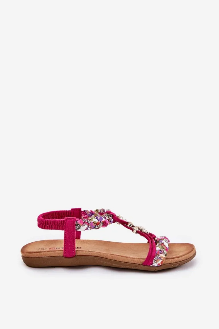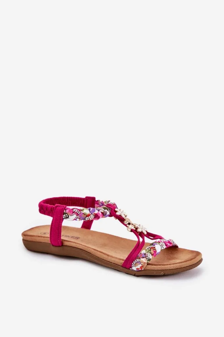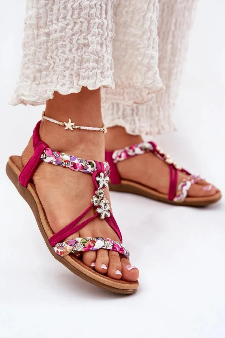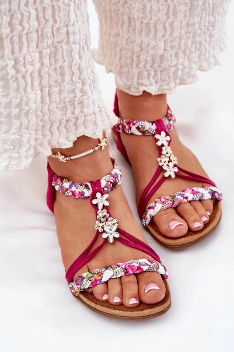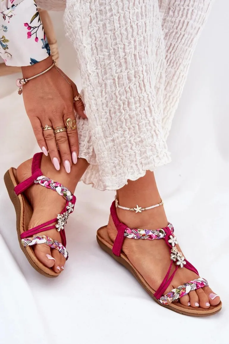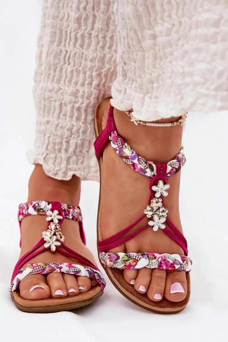 Damskie sandały wykonane z połączenia eko zamszu i tkaniny to doskonały wybór na ciepłe dni. Model ten wyróżnia się plecionymi paskami, subtelnymi przypinkami oraz błyszczącymi cyrkoniami, które dodają wyjątkowego uroku. Płaska podeszwa i miękka wkładka zapewniają komfort przez cały dzień. Sandały te doskonale komponują się z letnimi stylizacjami, nadając im lekkości i modnego akcentu. Idealne na codzienne wyjścia! Przy wyborze rozmiaru prosimy sugerować się tabelą rozmiarów.