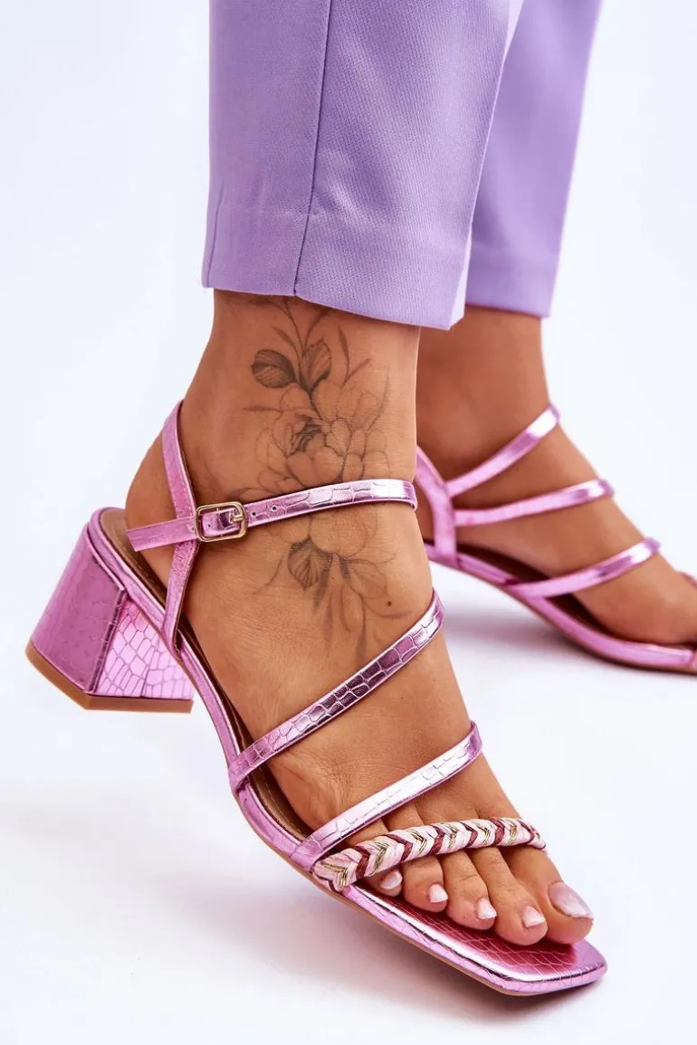 Eleganckie sandałki damskie wykonane z eko skóry. Osadzone na niskim obcasie w postaci słupka. Model ten posiada z przodu pleciony paseczek. Sandałki mają odkryty, kwadratowy, szerszy nosek. Idealne na upalne dni! Koniecznie sprawdź także pozostałe modele sandałek na naszej stronie! Przy wyborze rozmiaru prosimy sugerować się tabelą rozmiarów.