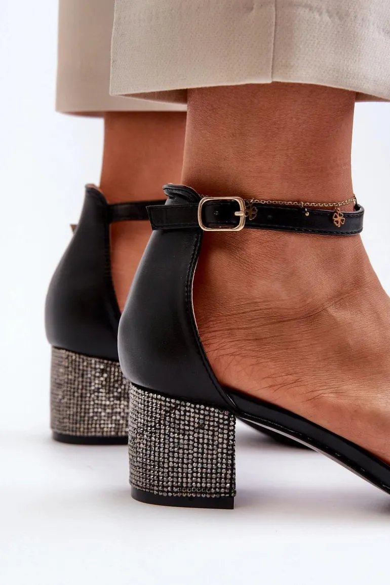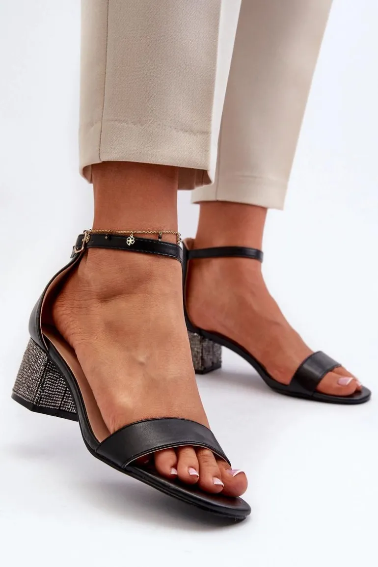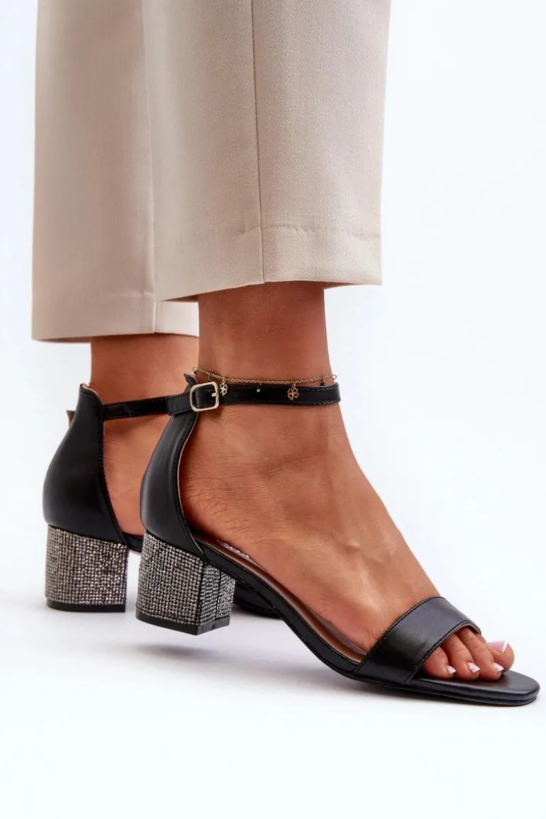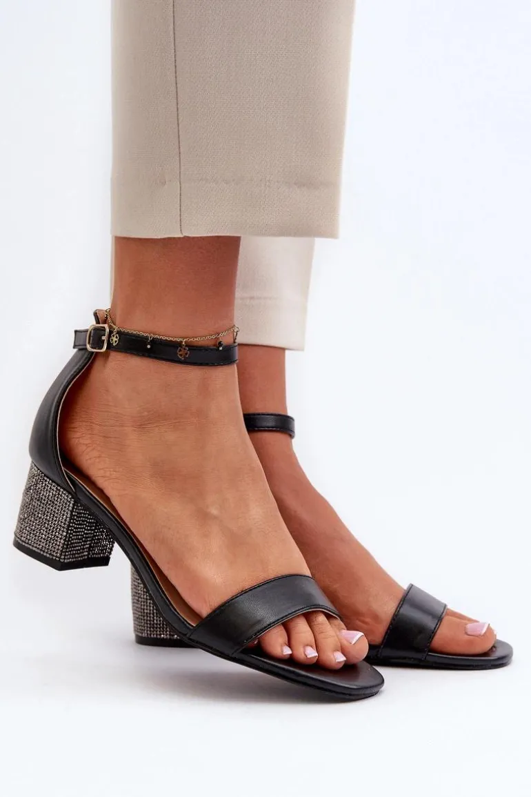 Wyjątkowe sandały damskie wykonane z eko skóry wyróżniają się zdobionym obcasem, który dodaje im elegancji i oryginalności. Regulowany pasek zapewnia odpowiednie dopasowanie, a modny design sprawia, że doskonale komponują się z różnymi stylizacjami. Idealne na letnie dni i wieczorne wyjścia! Przy wyborze rozmiaru prosimy sugerować się tabelą rozmiarów.