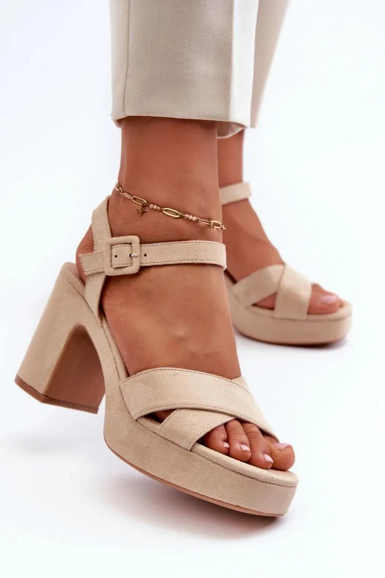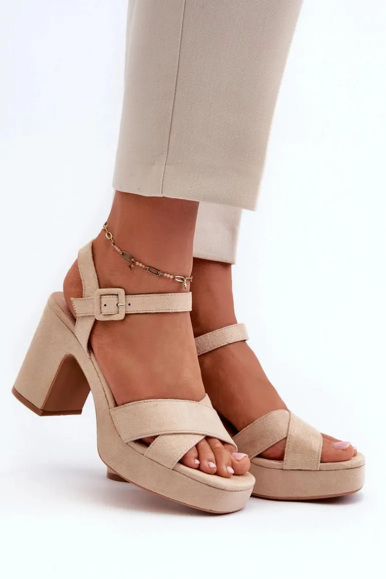 Damskie sandały wykonane z eko zamszu to połączenie elegancji i wygody. Osadzone na stabilnym słupku i platformie, zapewniają komfort noszenia przez cały dzień. Zapinane na regulowany pasek ze sprzączką, co pozwala na idealne dopasowanie do stopy. Te sandały są doskonałym wyborem do letnich stylizacji! Przy wyborze rozmiaru prosimy sugerować się tabelą rozmiarów.