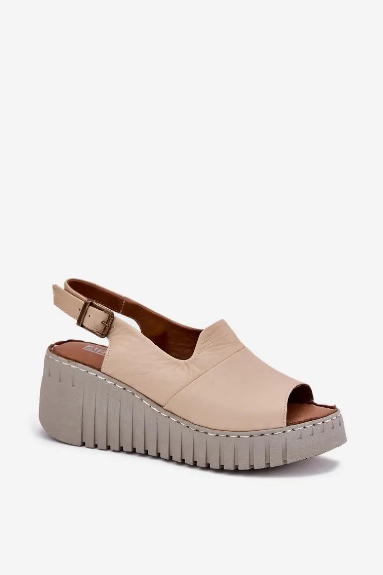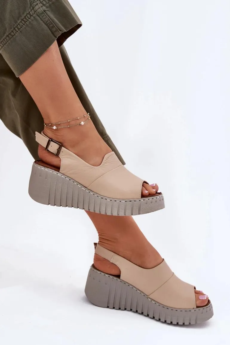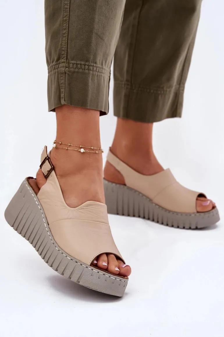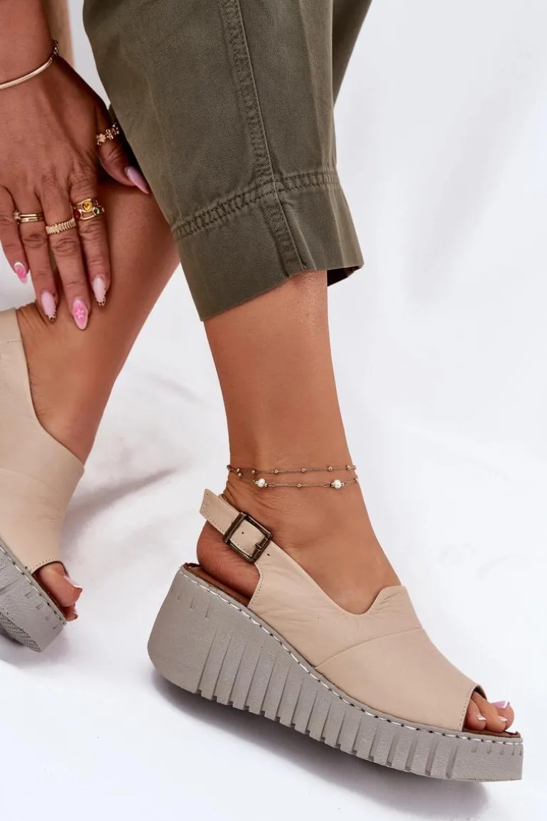 Sandały Damskie Z Naturalnej Skóry Na Koturnie Artiker 56C0957 Beżowe