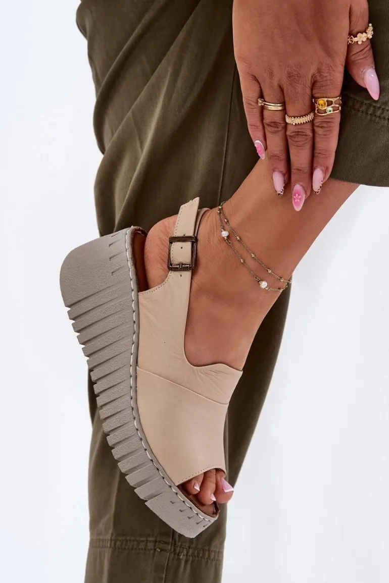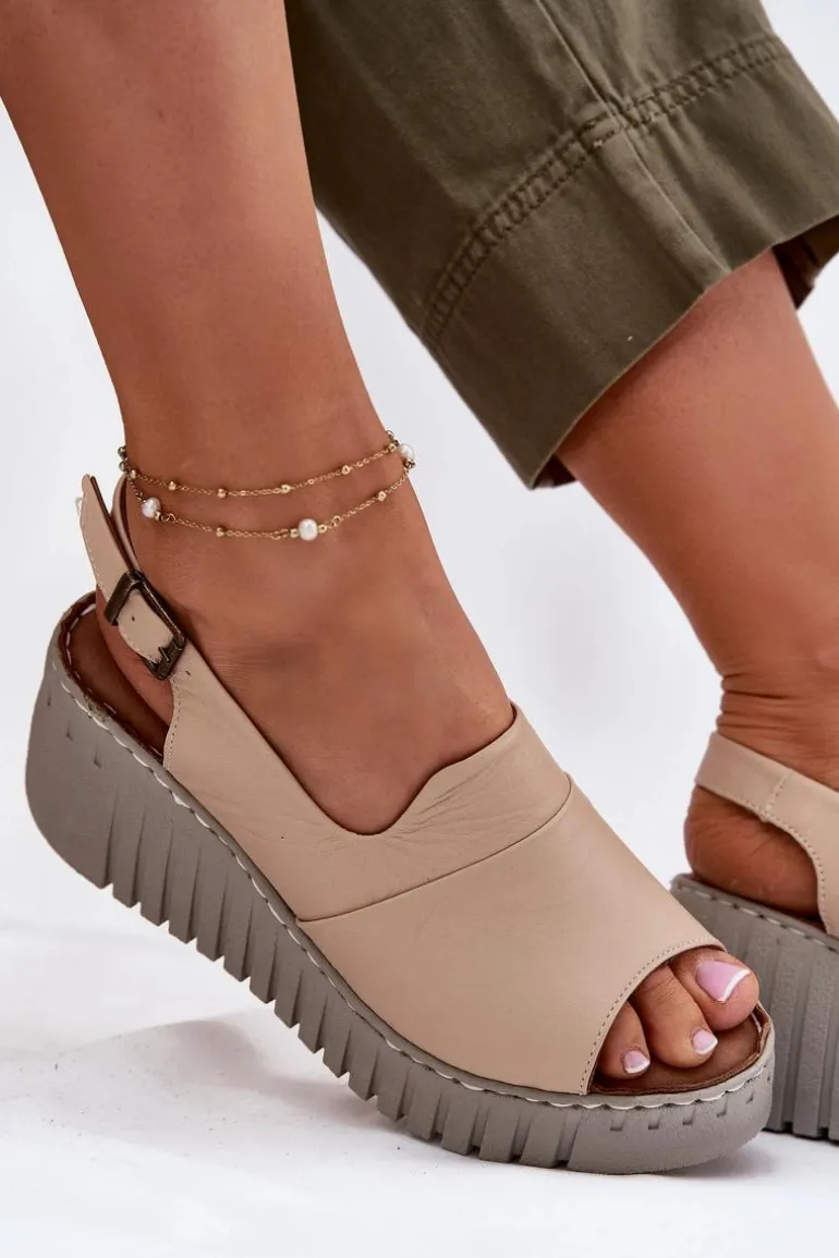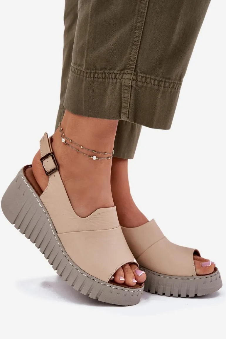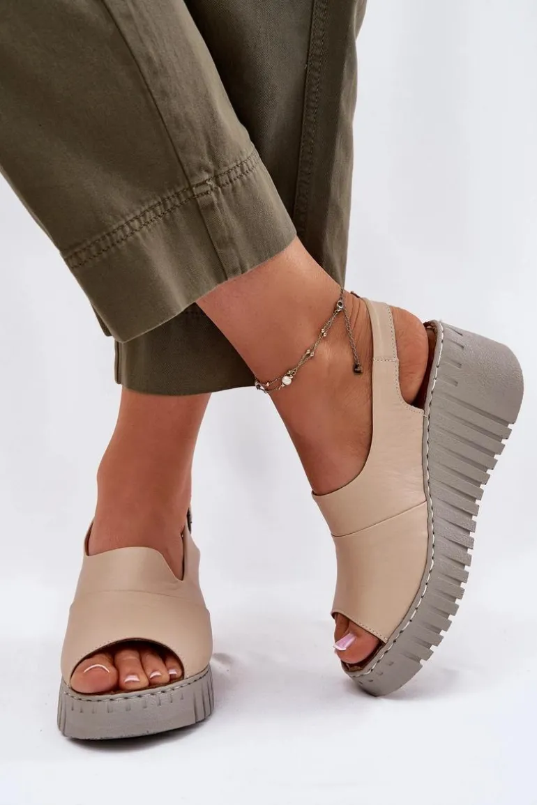 Sandały Damskie Z Naturalnej Skóry Na Koturnie Artiker 56C0957 Beżowe