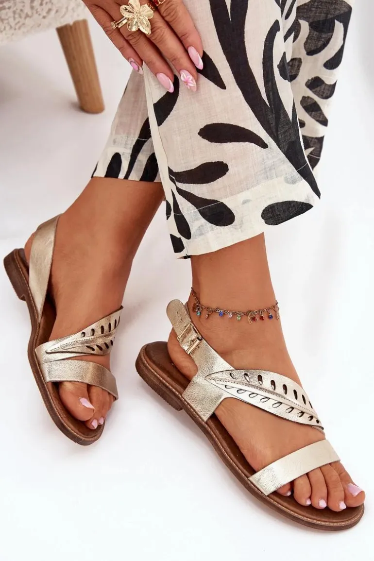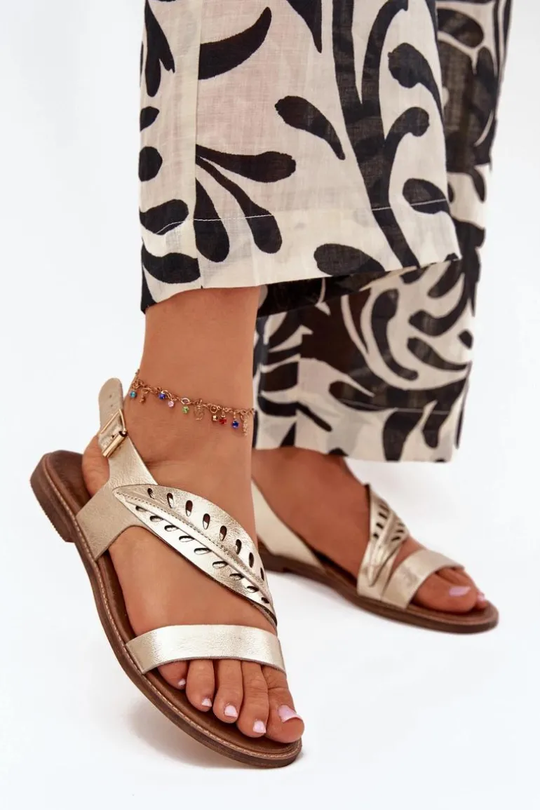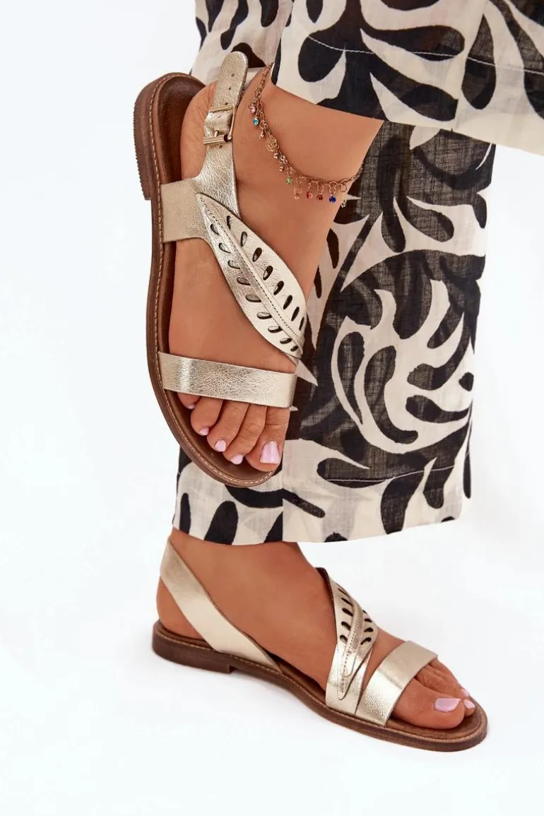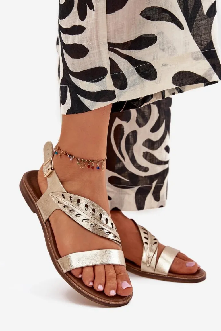 Eleganckie sandały damskie na płaskim obcasie, wykonane z wysokiej jakości naturalnej skóry, to połączenie klasyki i subtelnej elegancji. Zapinane na klamrę z regulowanym paskiem, zapewniają wygodę i idealne dopasowanie do stopy. Ozdobny listek na pasku z przodu dodaje im wyjątkowego charakteru. Doskonałe do letnich stylizacji, świetnie komponują się z sukienkami, spódnicami czy spodniami, wprowadzając do każdego looku elegancki akcent. Przy wyborze rozmiaru prosimy kierować się tabelą rozmiarów.