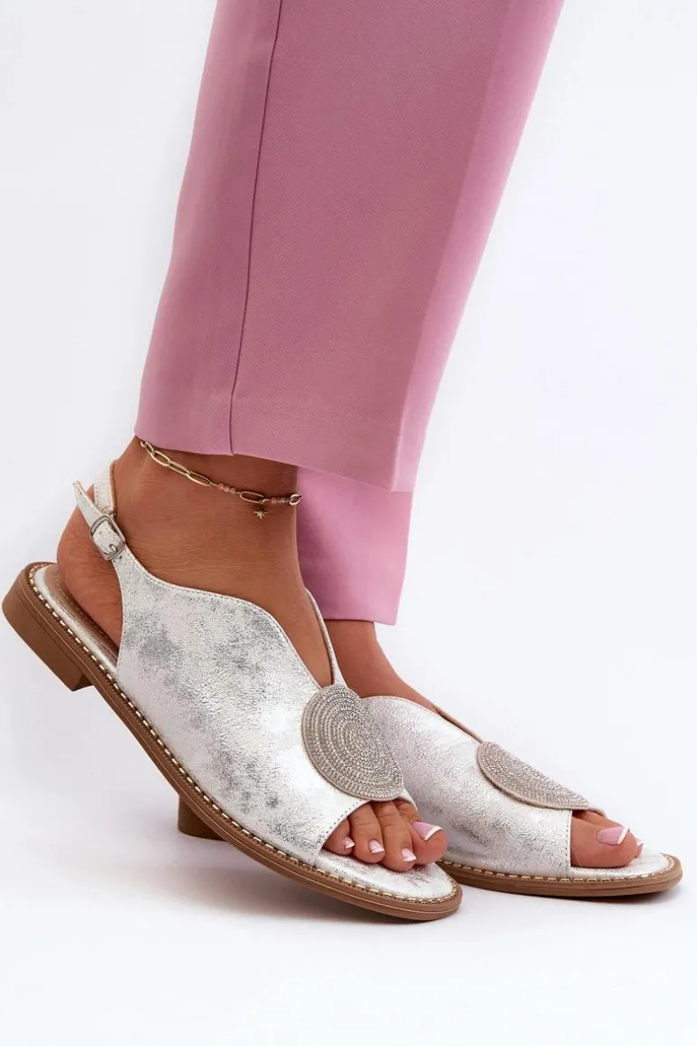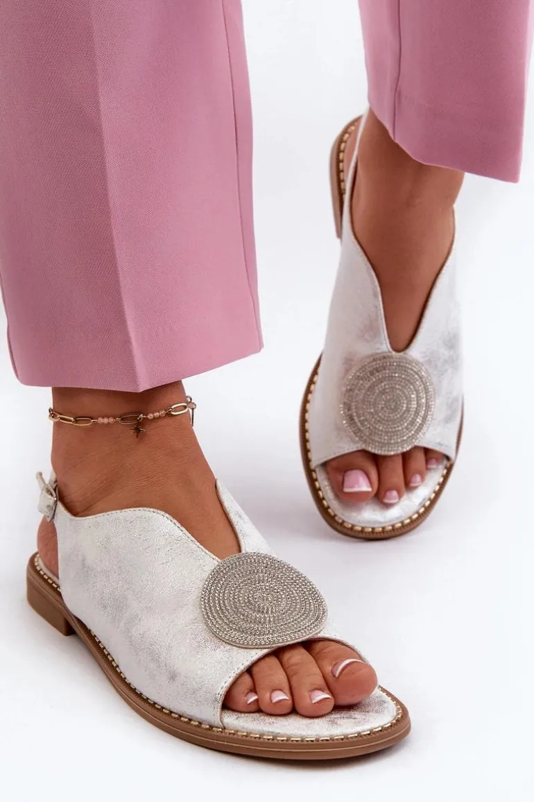 Błyszczące sandały damskie marki S.Barski to połączenie elegancji i wygody. Osadzone na płaskim obcasie. Zapinane na regulowany pasek ze sprzączką, gwarantują idealne dopasowanie do stopy. Skórzana wkładka zapewni komfort podczas użytkowania. Ozdoba dodaje wyjątkowego uroku. Idealne na letnie dni i wieczorne wyjścia! Przy wyborze rozmiaru prosimy kierować się tabelą rozmiarów.