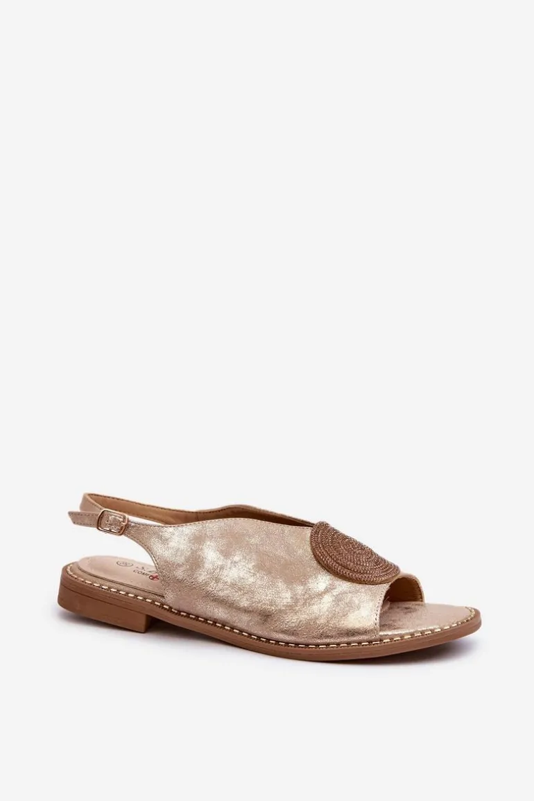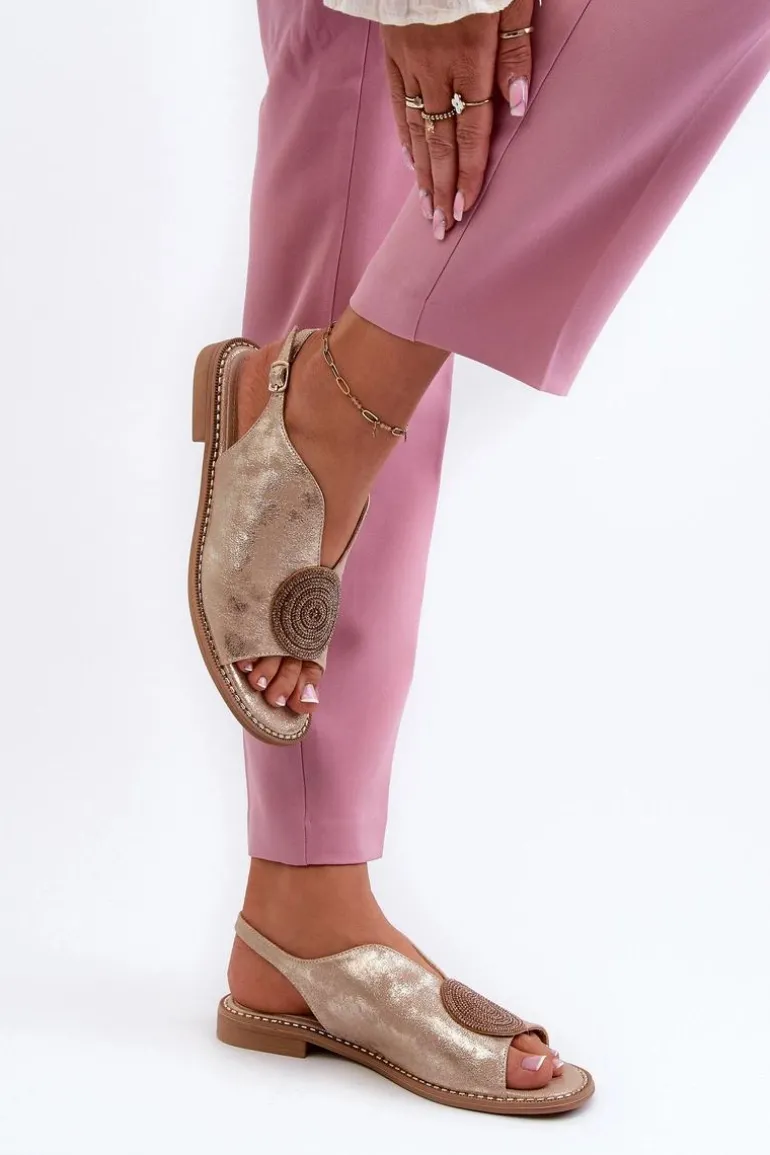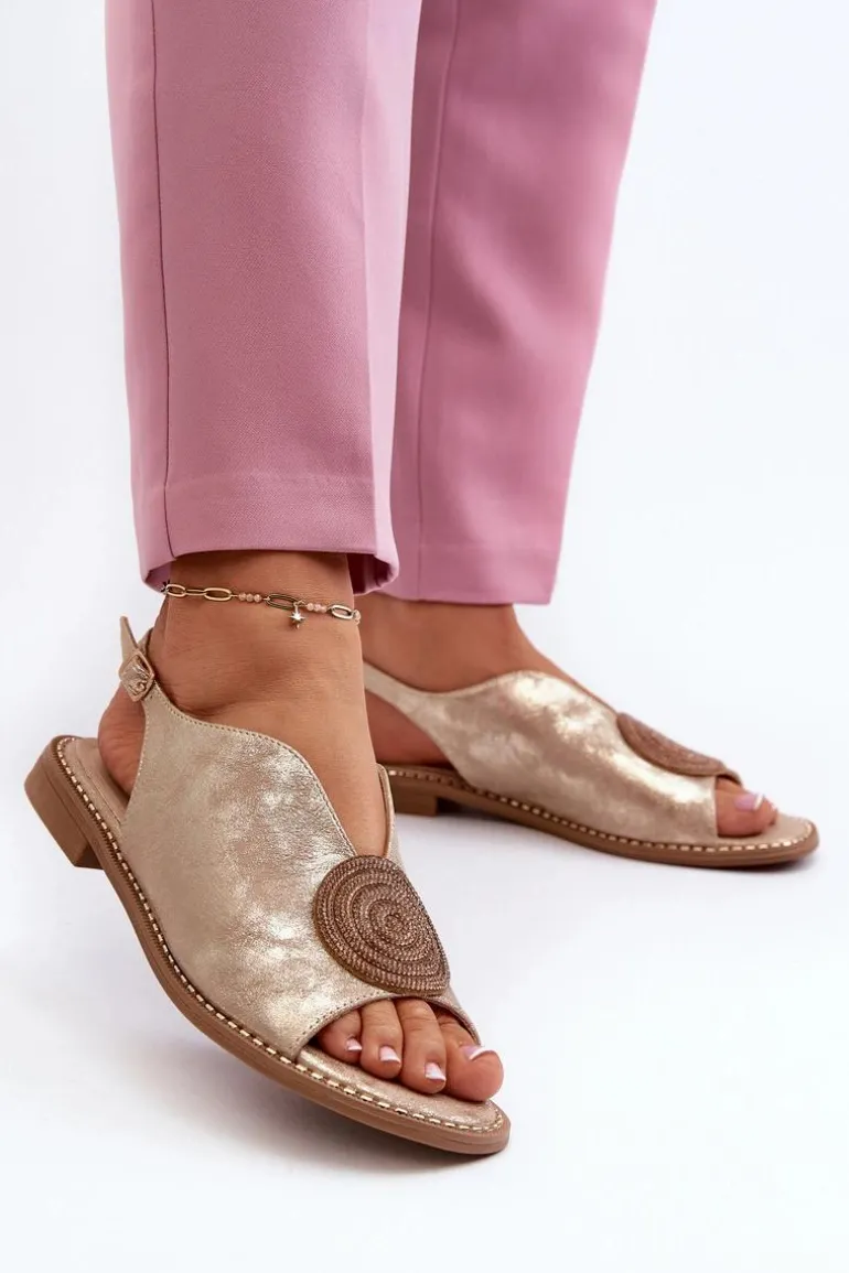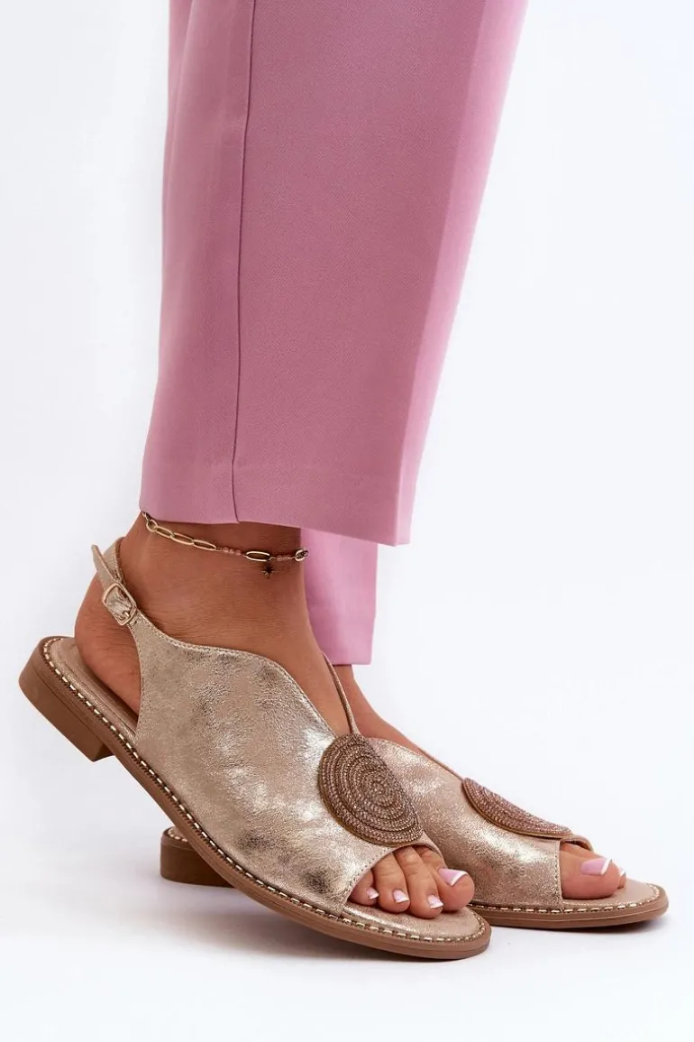 Sandały Damskie Z Ozdobą Na Płaskim Obcasie S.Barski KV24-057 Złote