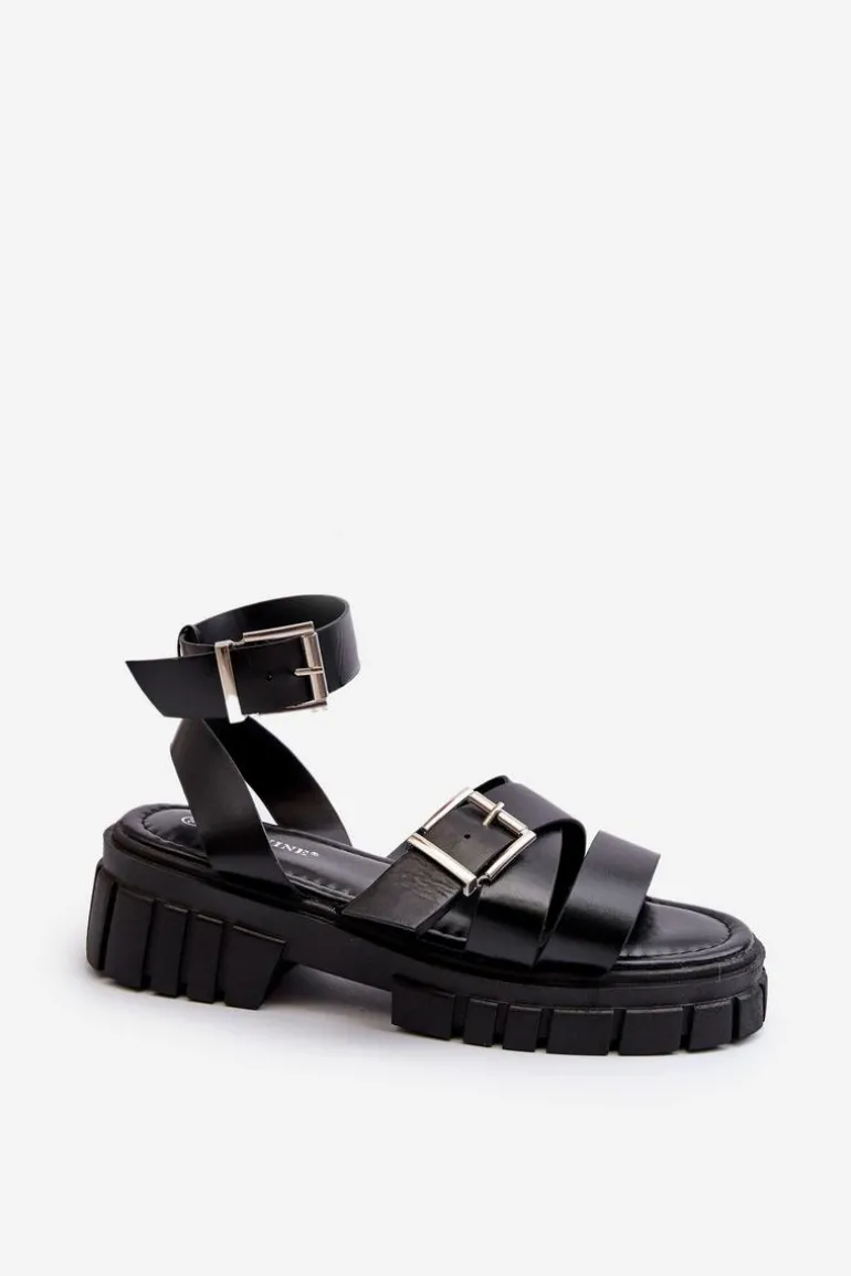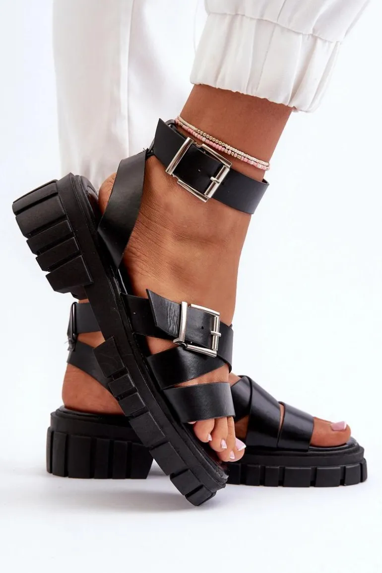 Sandały damskie wykonane z eko skóry. Osadzone na platformie i płaskim obcasie, zapewniają stabilność i wygodę podczas chodzenia. Zapinane na regulowany pasek ze sprzączką, gwarantują idealne dopasowanie do stopy. Dodatkowo miękka wkładka sprawia, że nawet długie spacery będą komfortowe i przyjemne. Idealne na letnie dni i wieczorne wyjścia! Przy wyborze rozmiaru prosimy kierować się tabelą rozmiarów.