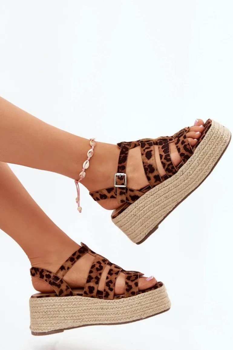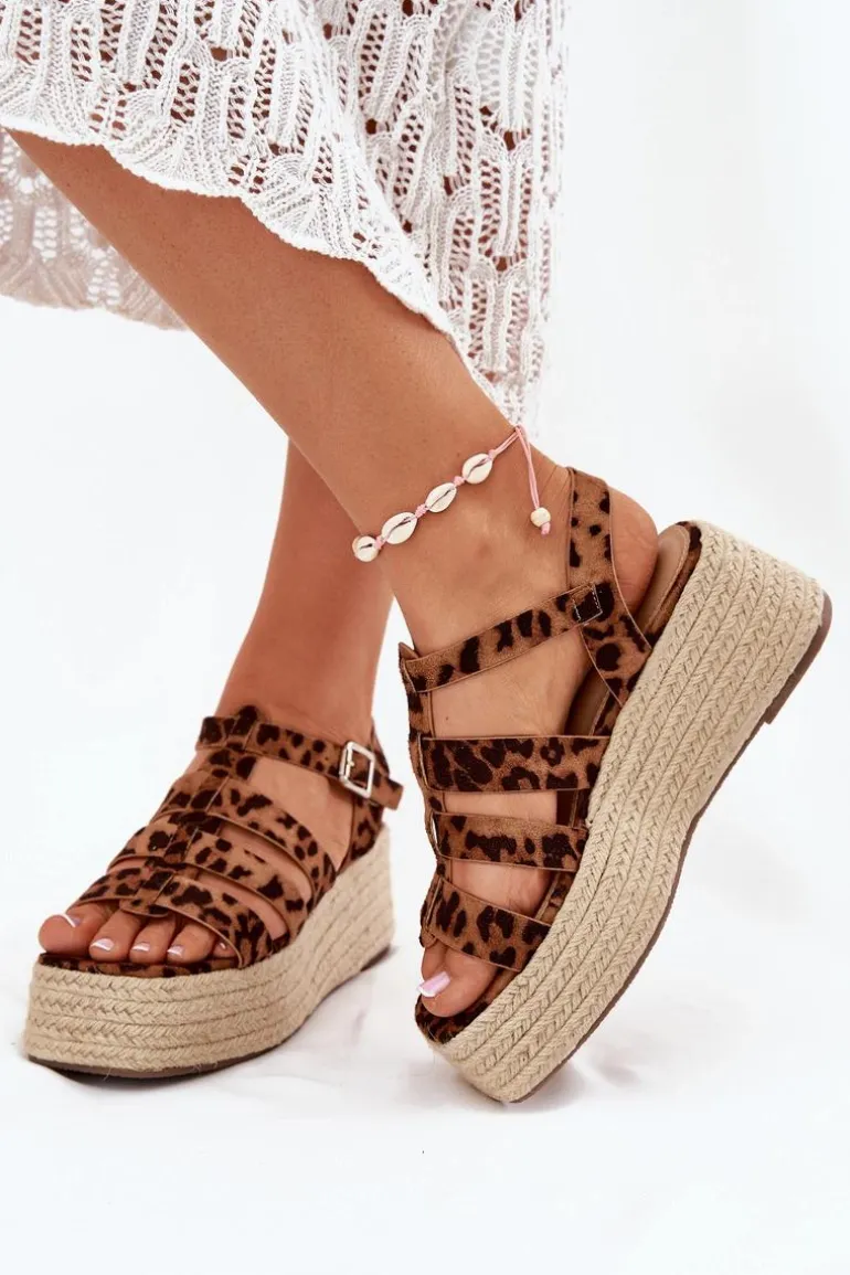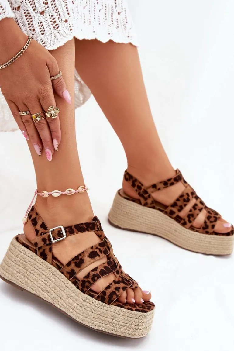 Sandały damskie z eko zamszu, osadzone na platformie z delikatnym koturnem i plecionką to doskonała propozycja na ciepłe dni. Zapinane na klamrę z regulowanym paskiem, zapewniają idealne dopasowanie do stopy. Miękka wkładka gwarantuje komfort przez cały dzień, a połączenie platformy z koturnem dodaje subtelnej wysokości i stabilności. Idealne do letnich stylizacji! Przy wyborze rozmiaru prosimy sugerować się tabelą rozmiarów.