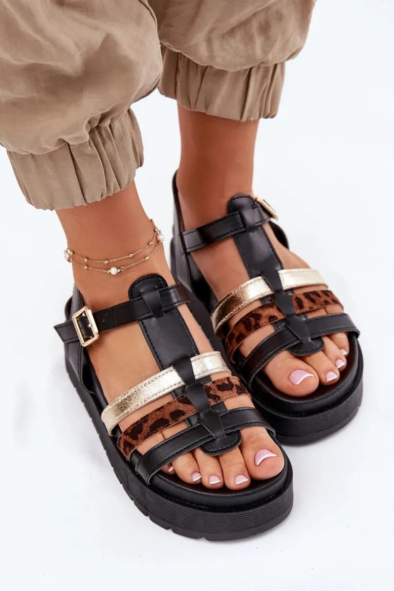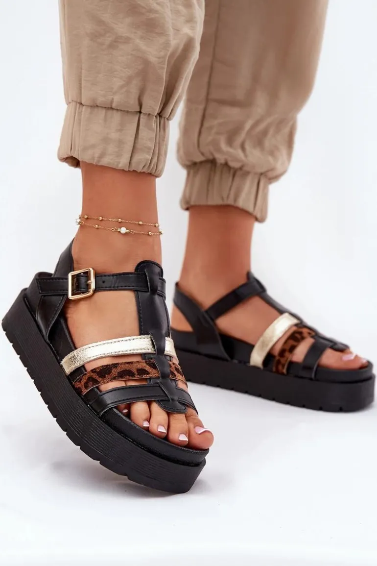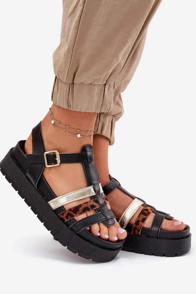 Sandały damskie wykonane z eko skóry, które nie tylko świetnie się prezentują, ale także delikatnie wydłużą sylwetkę dzięki platformie. Model ten zapinany jest na klamrę z regulowanym paskiem, co pozwala na idealne dopasowanie do stopy. Z przodu znajdują się trzy smukłe paseczki. Model ten to doskonały wybór na ciepłe, letnie dni! Przy wyborze rozmiaru prosimy kierować się tabelą rozmiarów.