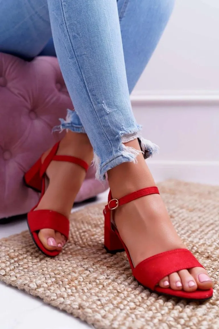Sandały Damskie Zamszowe Czerwone Galisa
