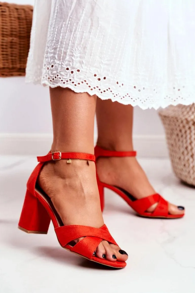 Sandały Damskie Zamszowe Pomarańczowe Lady Milion