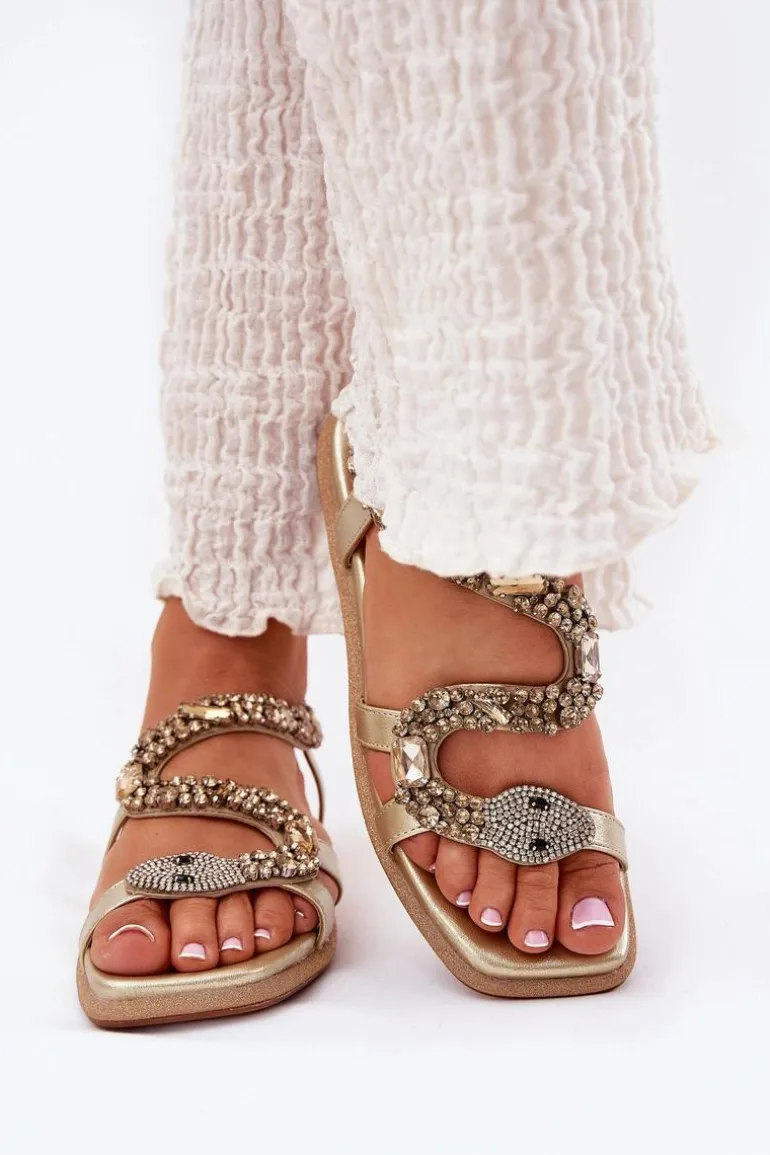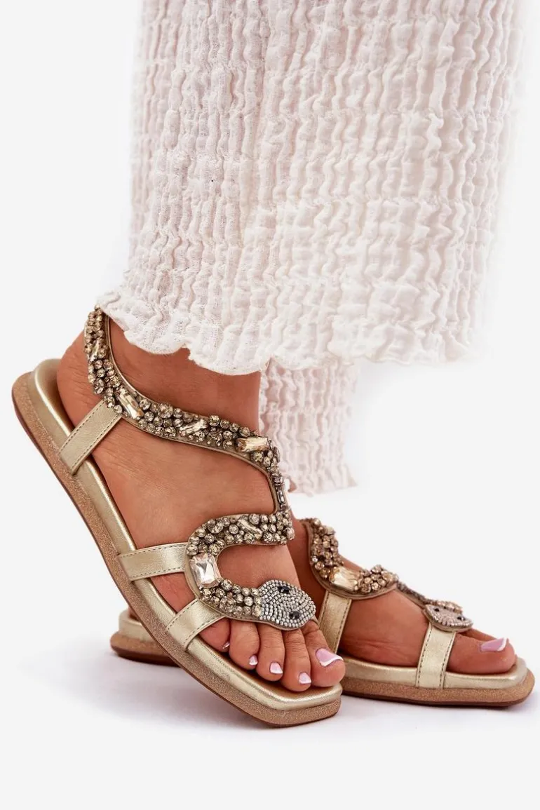 Sandały damskie wykonane z eko skóry to idealny wybór na letnie dni. Płaska podeszwa ozdobiona brokatem dodaje im subtelnego blasku, a unikalne kryształki, które tworzą kształt węża, nadają im wyjątkowego charakteru. Te sandały będą doskonałym akcentem do letnich stylizacji, łącząc elegancję z modnym, oryginalnym wyglądem. Przy wyborze rozmiaru prosimy sugerować się tabelą rozmiarów.