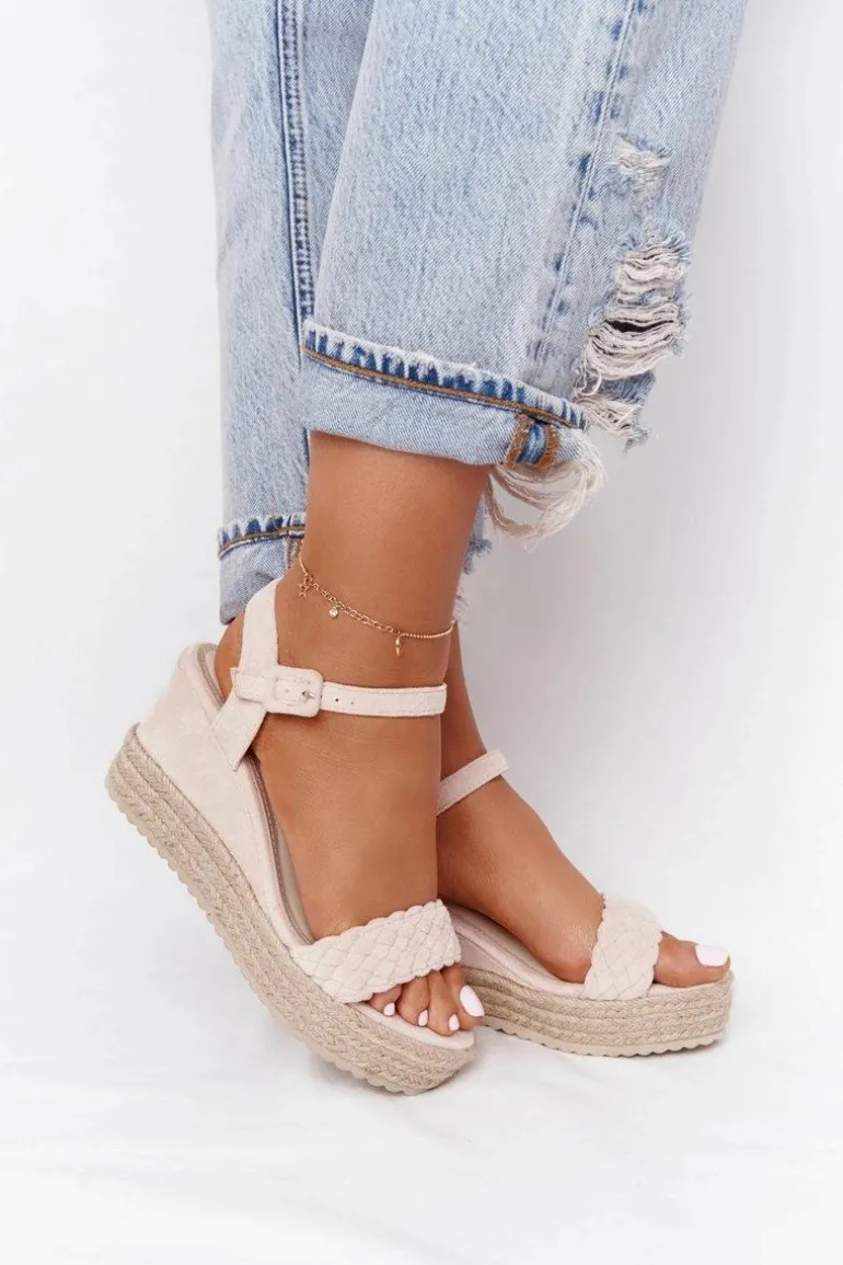 Sandały Na Koturnie Z Plecionką Beżowe Baleary