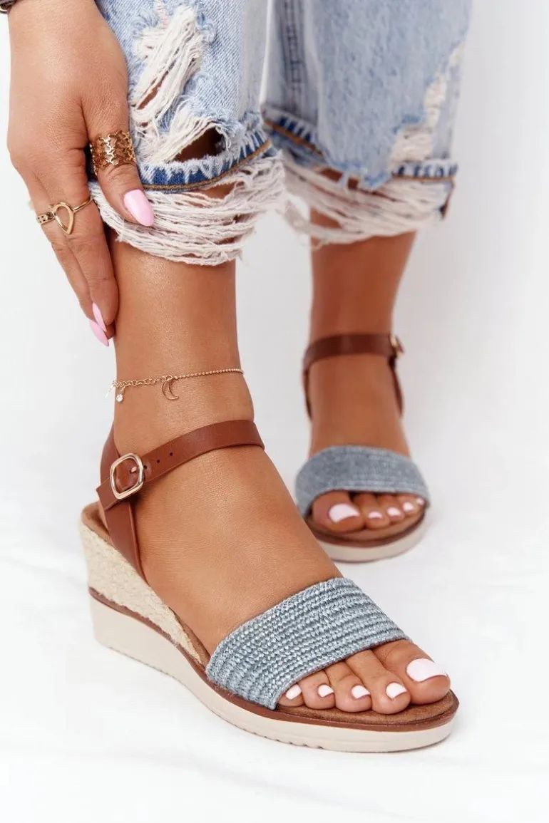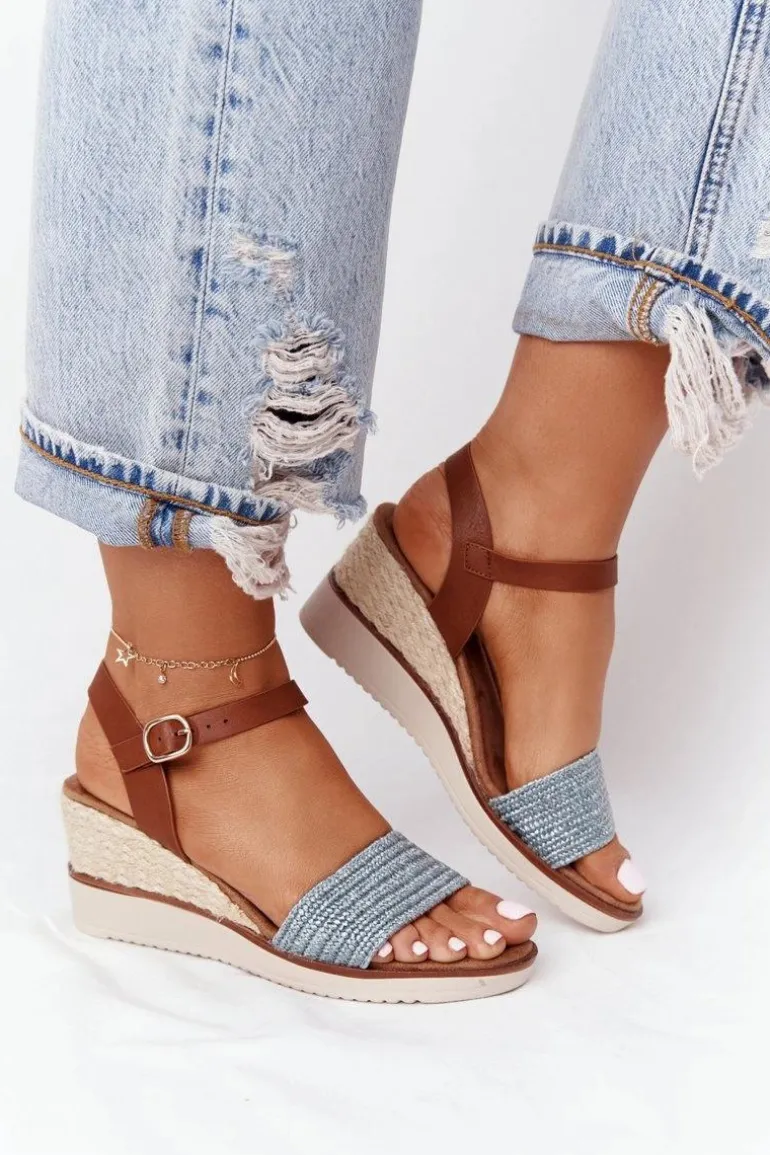 Sandały Na Koturnie Z Plecionką Niebieskie Tenerife