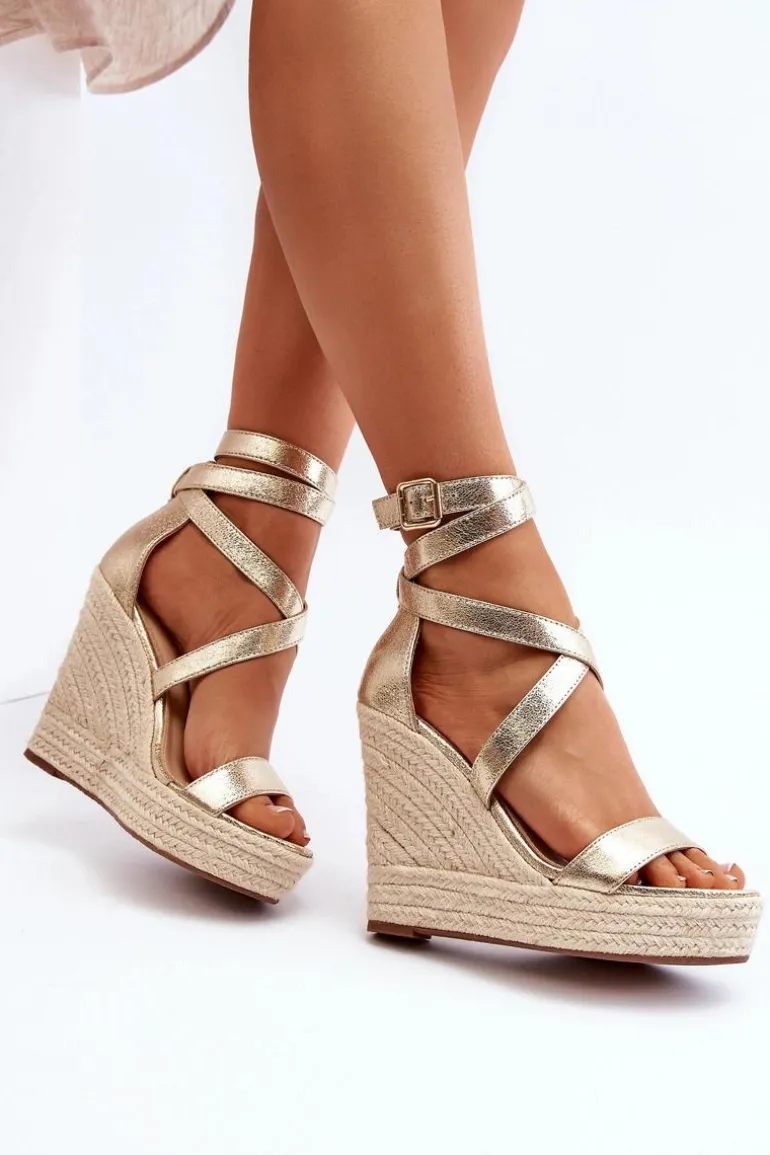 Sandały damskie wykonane z eko skóry. Osadzone na koturnie i platforma z jutową plecionką. Zapinane na regulowany pasek ze sprzączką. Model ten to doskonałe rozwiązanie dla osób poszukujących obuwia, które łączy wygodę i elegancję, szczególnie podczas długich letnich spacerów! Przy wyborze rozmiaru prosimy sugerować się tabelą rozmiarów.