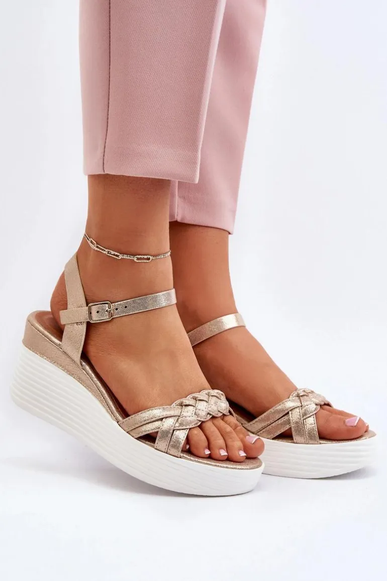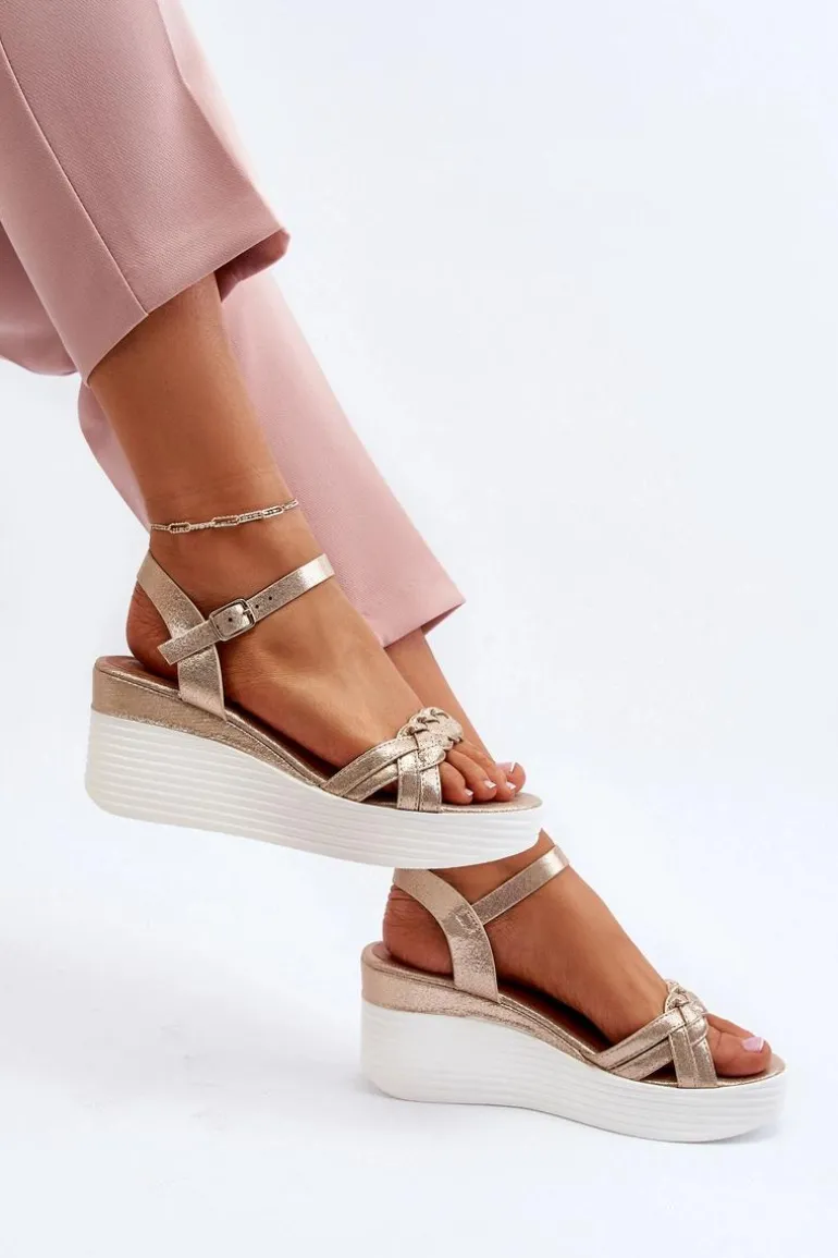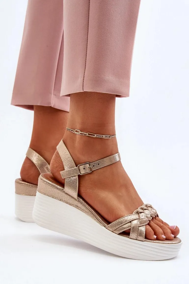 Sandały damskie to idealny wybór do letnich stylizacji. Model ten posiada zapinanie na regulowany pasek ze sprzączką, który zapewni odpowiednie dopasowanie. Obcas obcas w formie koturnu i platforma będą gwarantować stabilność i wygodę. Dodatkowo eko skórzana wkładka zapewni komfort nawet podczas długiego noszenia. Przy wyborze rozmiaru prosimy sugerować się tabelą rozmiarów.