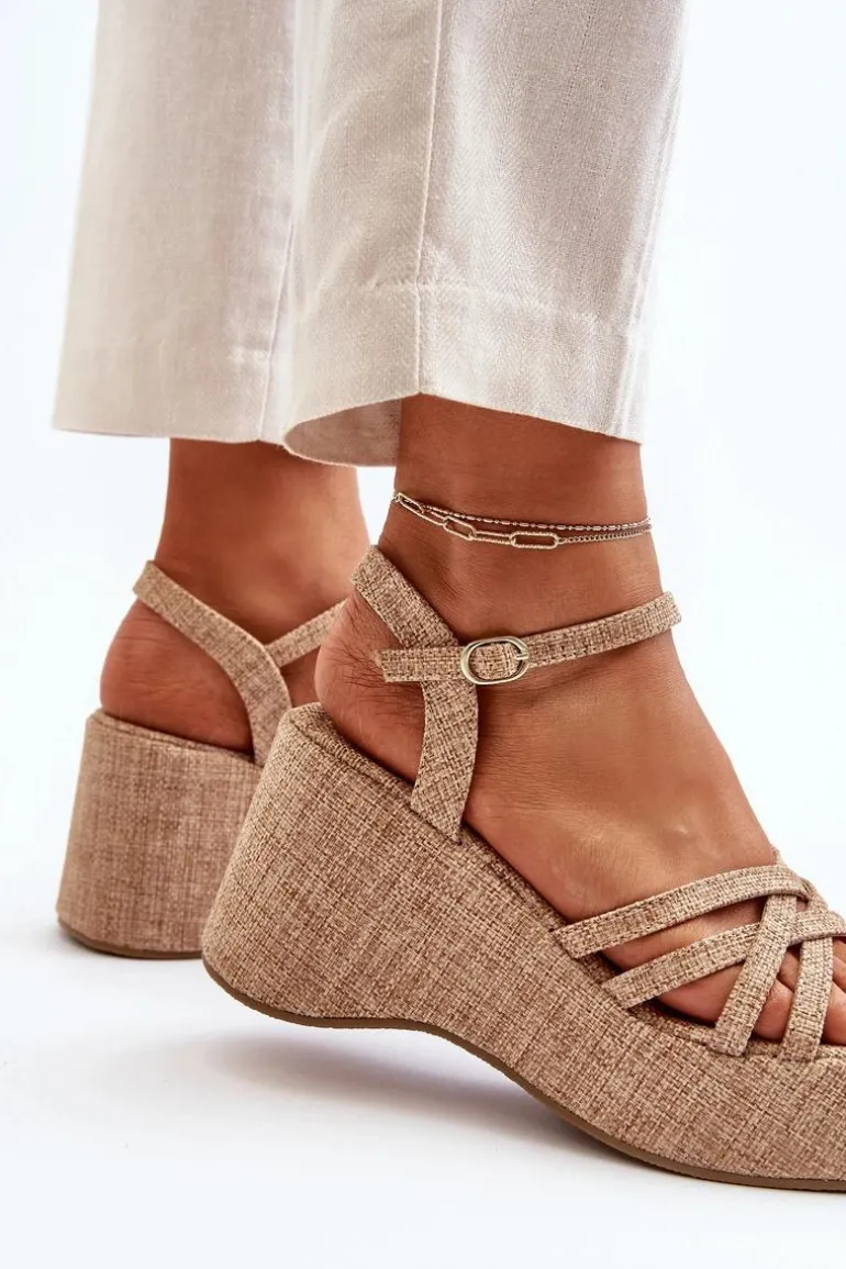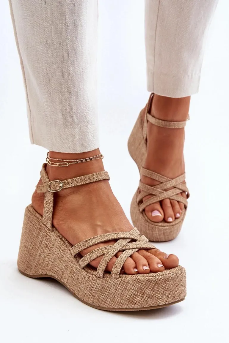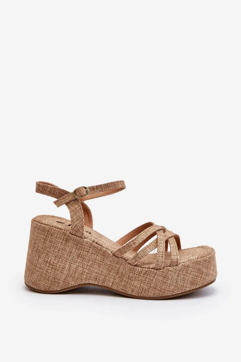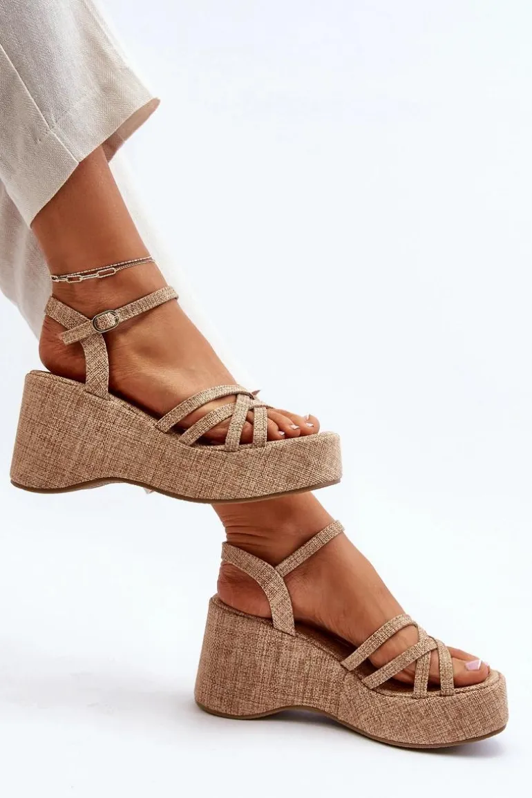 Sandały Na Platformie I Koturnie Beżowe Oporia