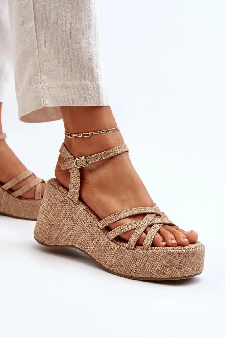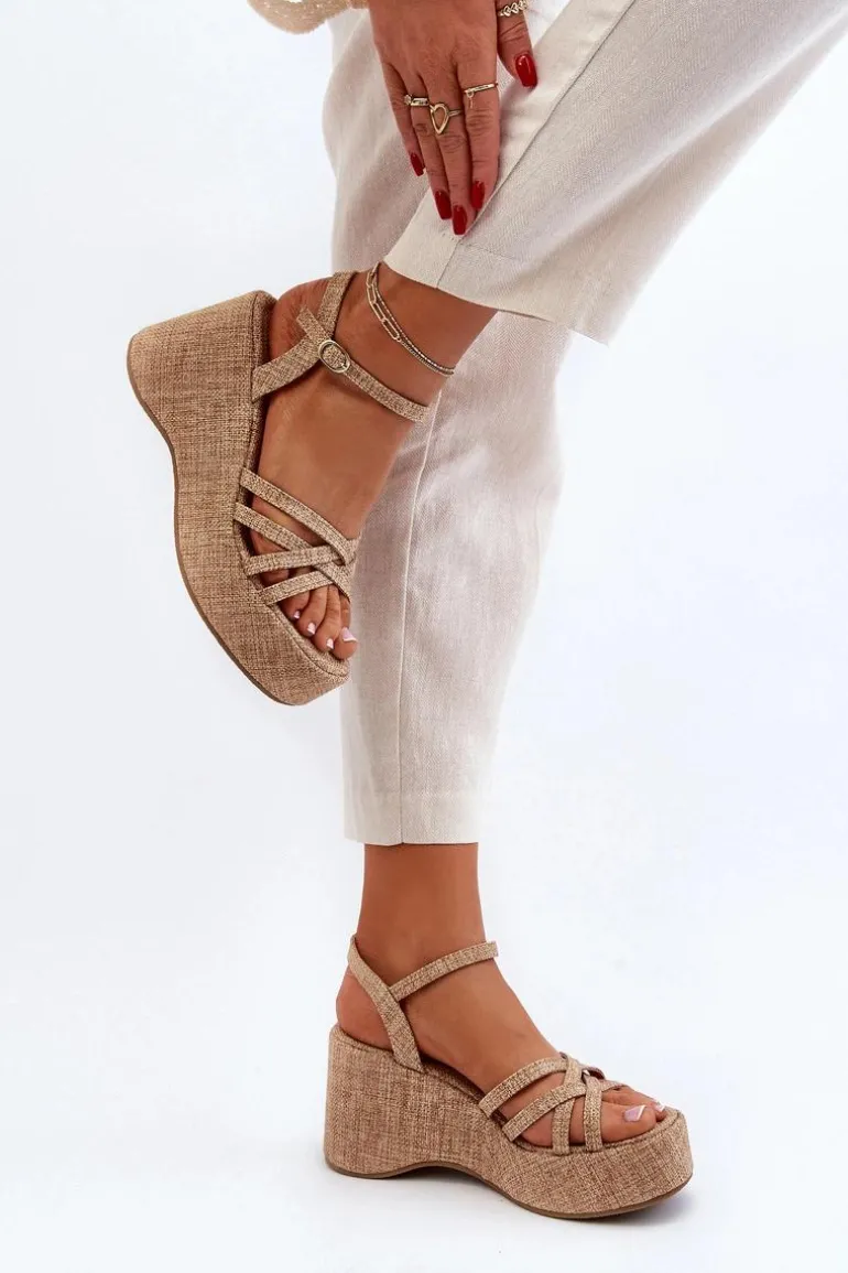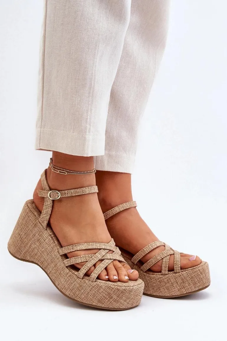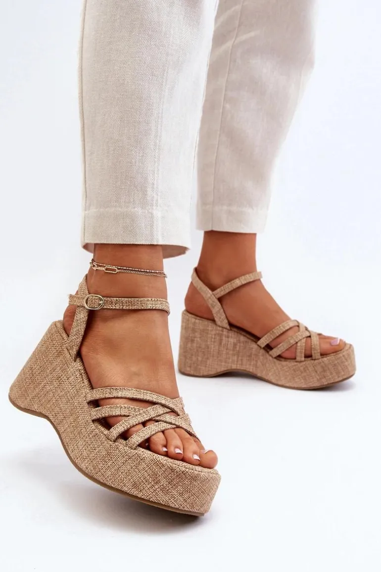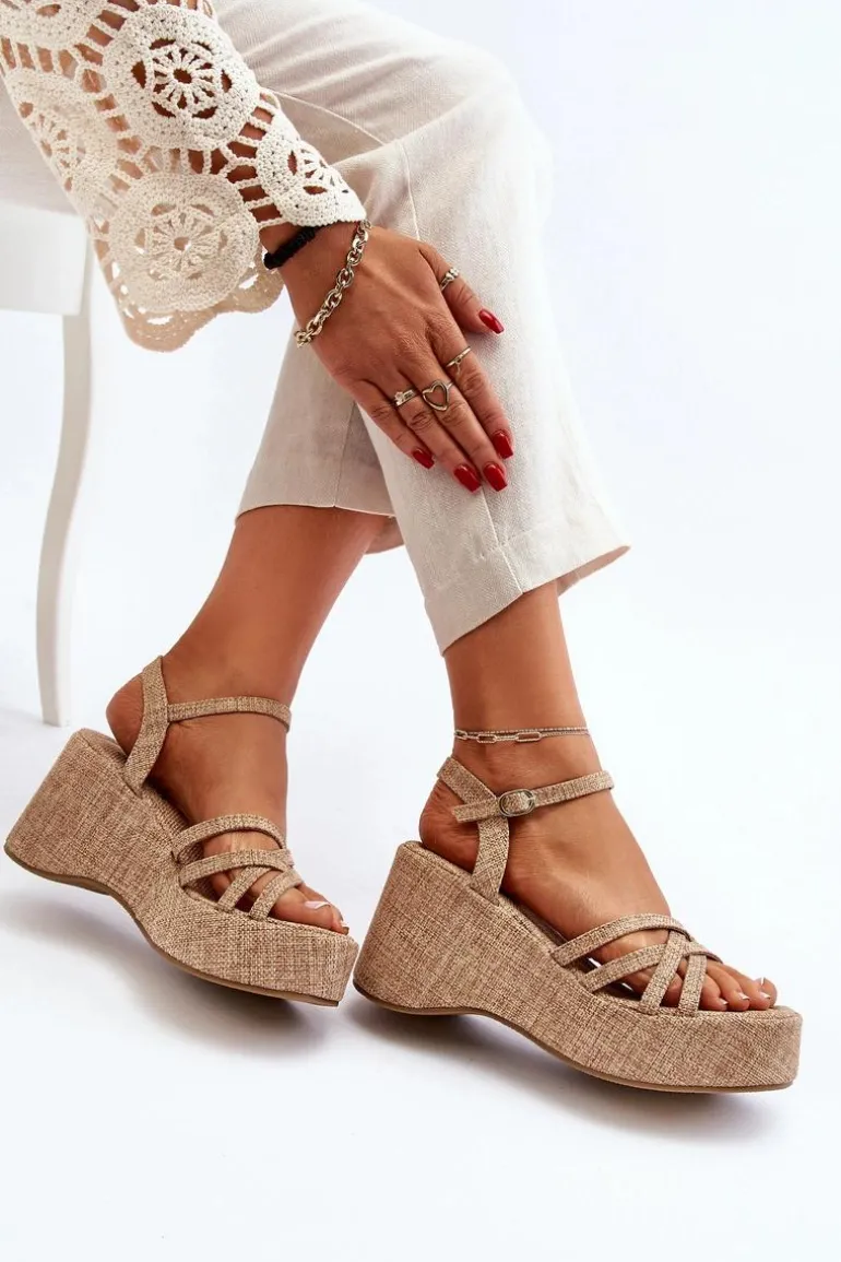 Sandały Na Platformie I Koturnie Beżowe Oporia