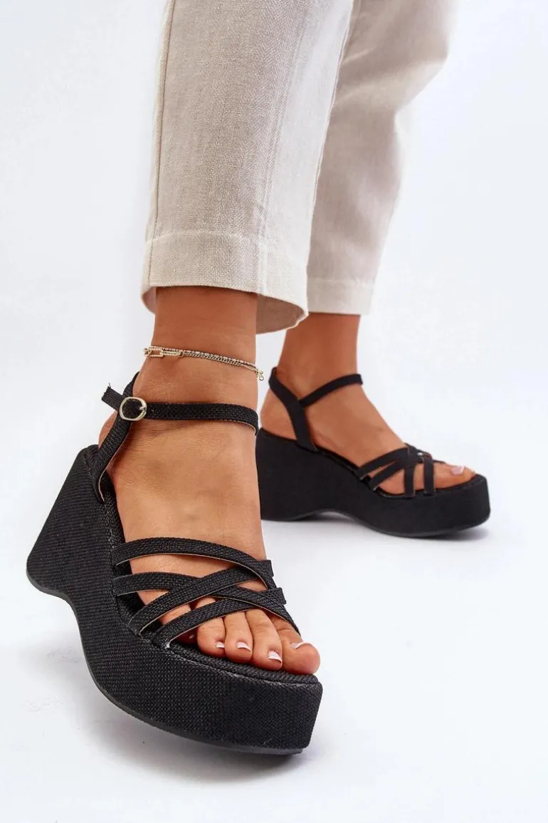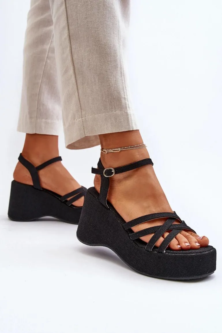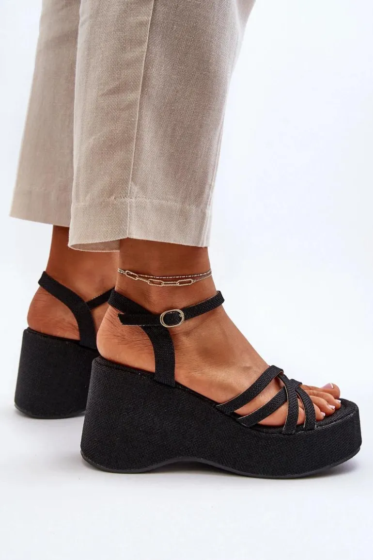 Sandały damskie na platformie i koturnie to nie tylko modne obuwie, ale także gwarancja wygody przez cały dzień. Ich regulowany pasek ze sprzączką zapewnia odpowiednie dopasowanie, a niezwykle miękka wkładka sprawia, że chodzenie w nich to czysta przyjemność, nawet przy długotrwałym użytkowaniu. Te sandały stanowią doskonałe uzupełnienie zwiewnej sukienki lub spódniczki, dodając letniej stylizacji niepowtarzalnego uroku. Przy wyborze rozmiaru prosimy kierować tabelą rozmiarów.