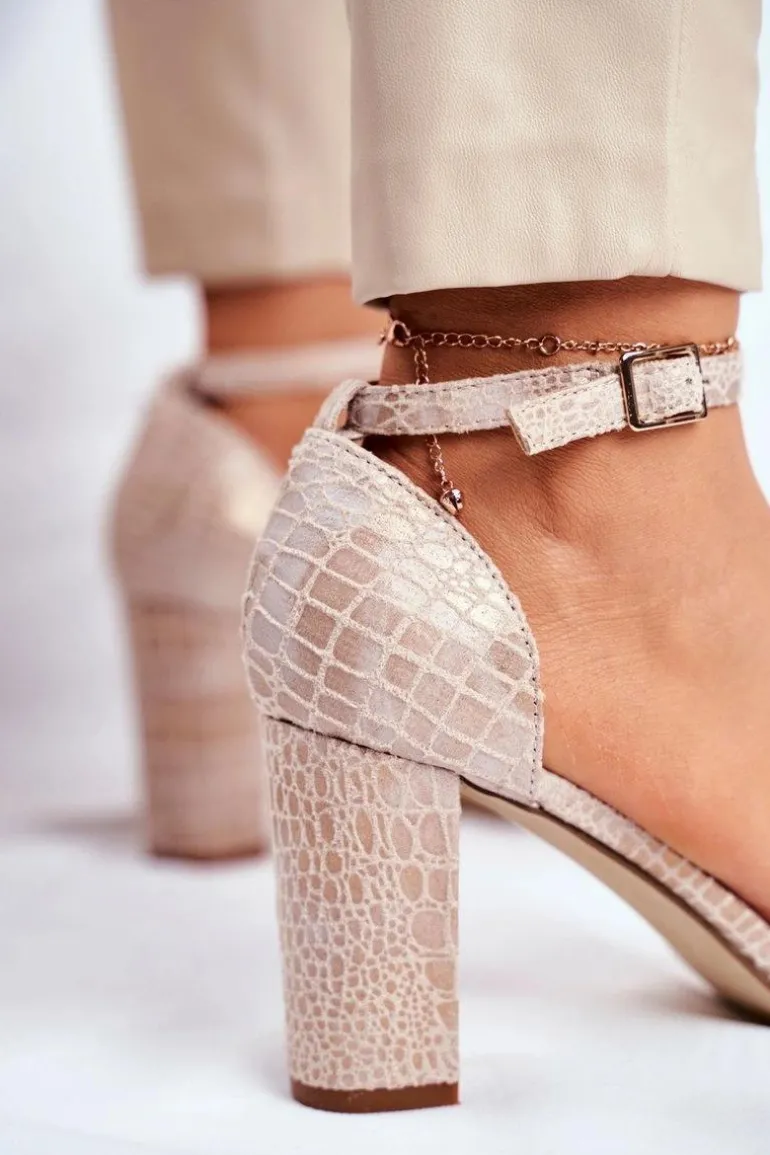 Sandały Na Słupku Sergio Leone SK870 Beżowe Zwierzęcy Wzór