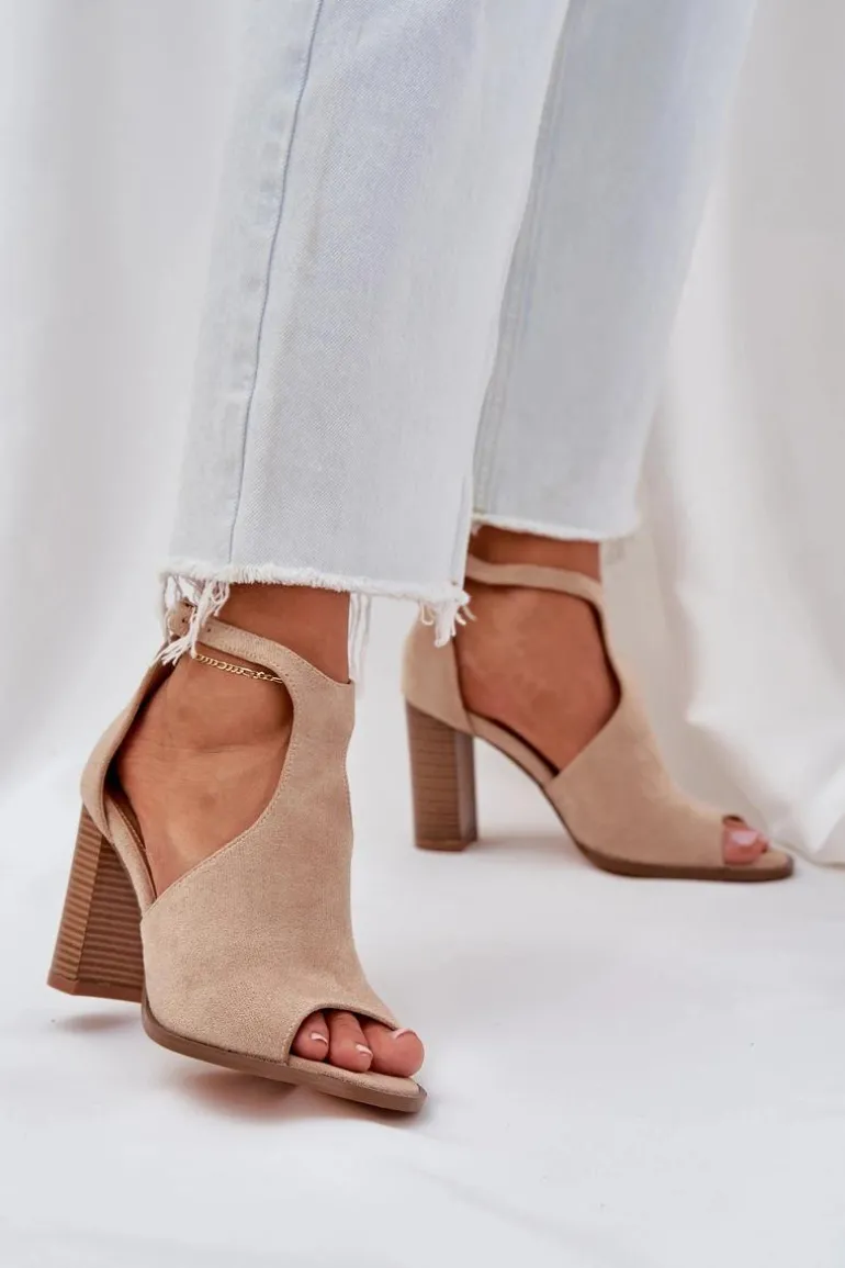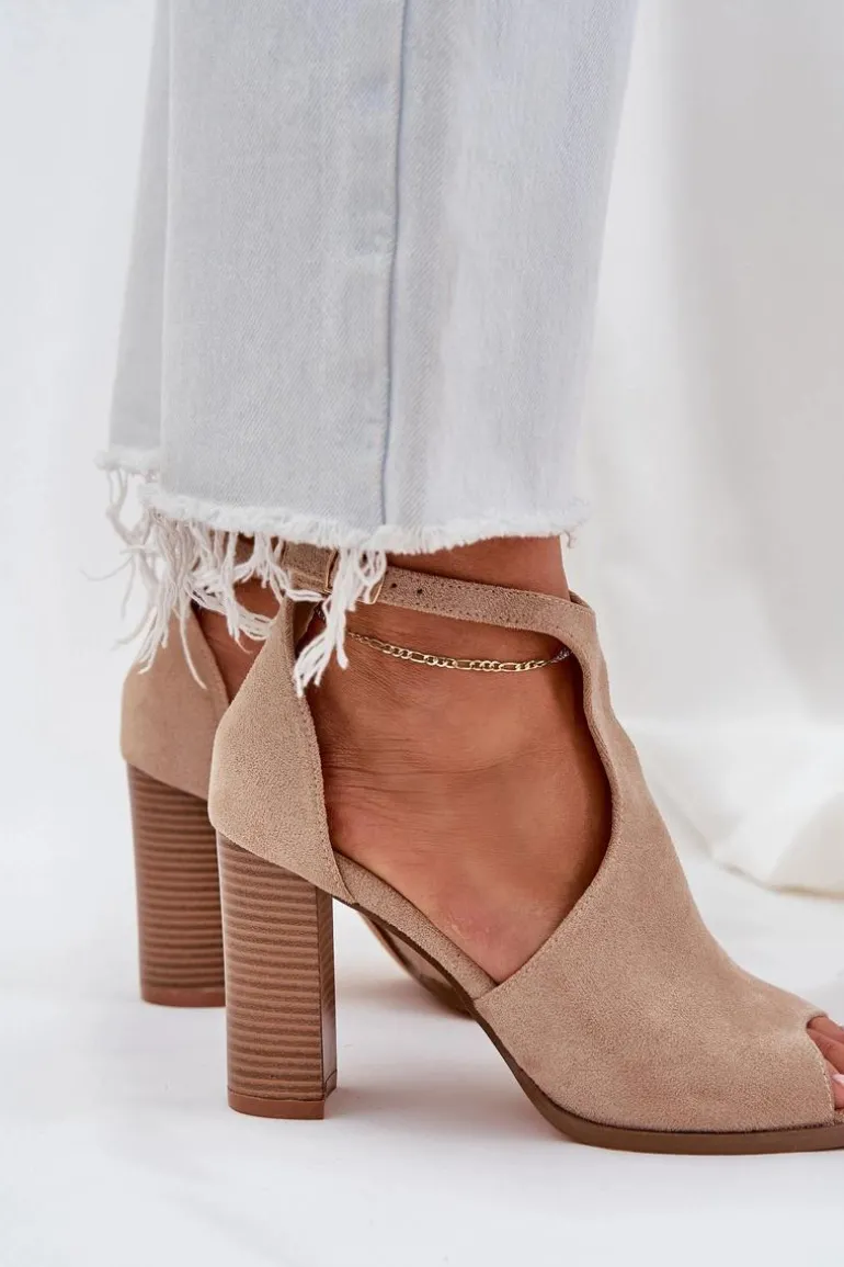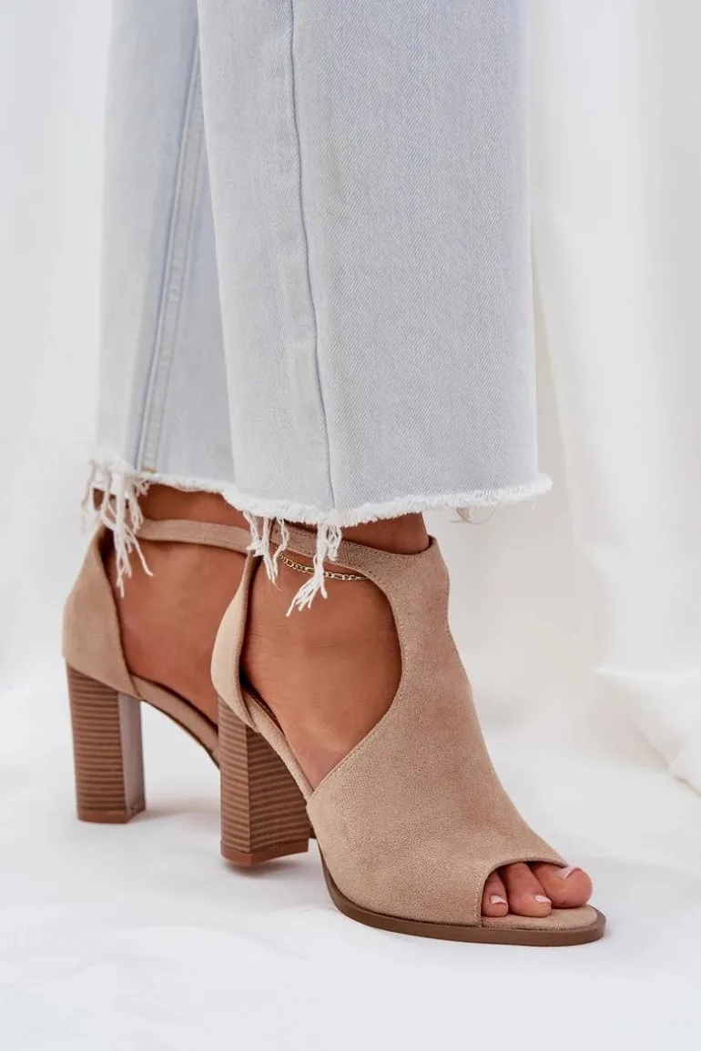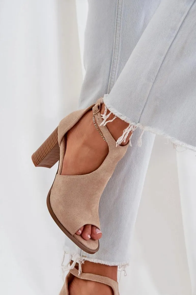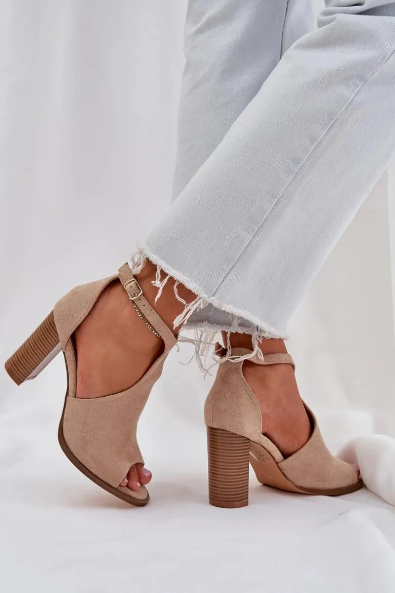 Sandały Na Słupku Z Eko Zamszu Beżowe Lanadriena