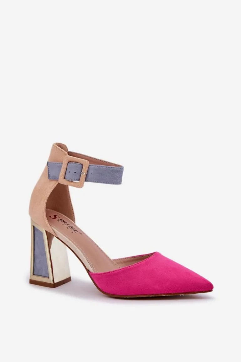 Kolorowe sandały z eko zamszu to odważna i stylowa propozycja dla kobiet, które lubią wyróżniać się w tłumie. Osadzone na obcasie słupku ze złotym, lustrzanym elementem, który dodaje im nowoczesnego blasku. Szpiczaste noski nadają im eleganckiego charakteru, a zakryta piętka oraz regulowany pasek ze sprzączką zapewniają wygodę i stabilność. Te sandały będą doskonałym wyborem na wieczorne wyjścia, imprezy czy eleganckie spotkania, łącząc wyjątkowy design z funkcjonalnością. Przy wyborze rozmiaru prosimy sugerować się tabelą rozmiarów.
