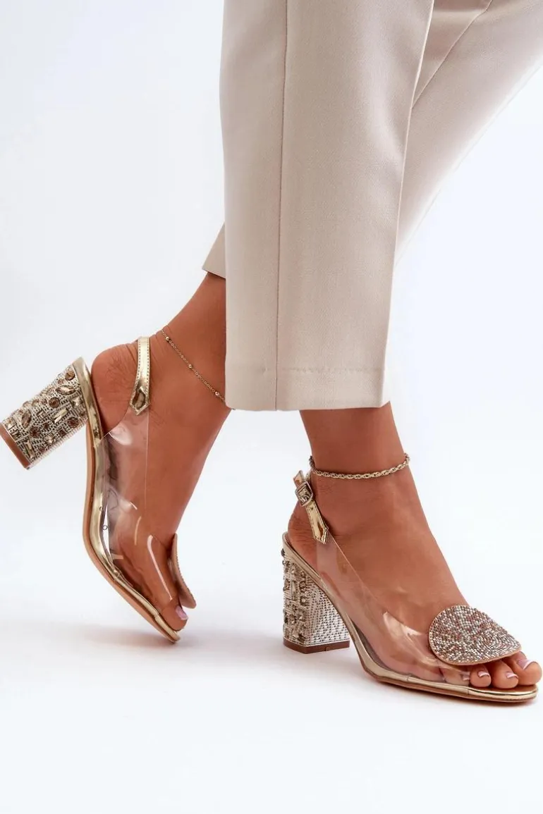 Sandały Transparentne Na Słupku Złote D&A MR38-812