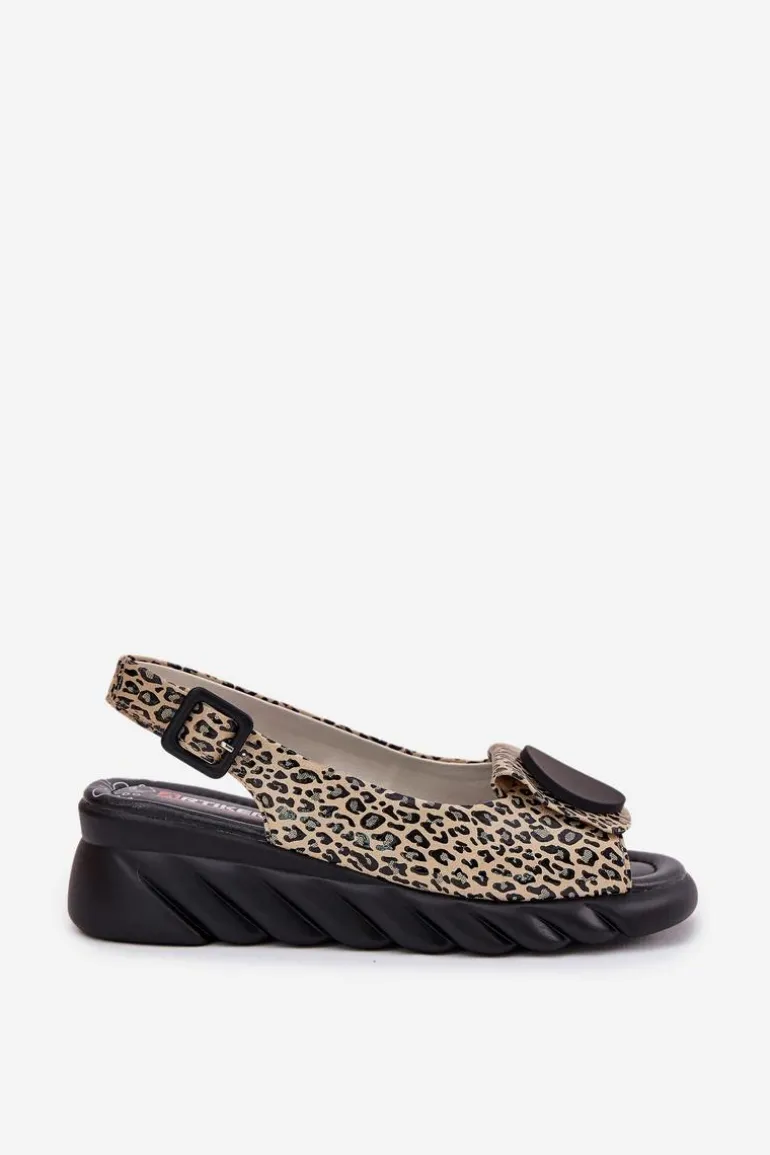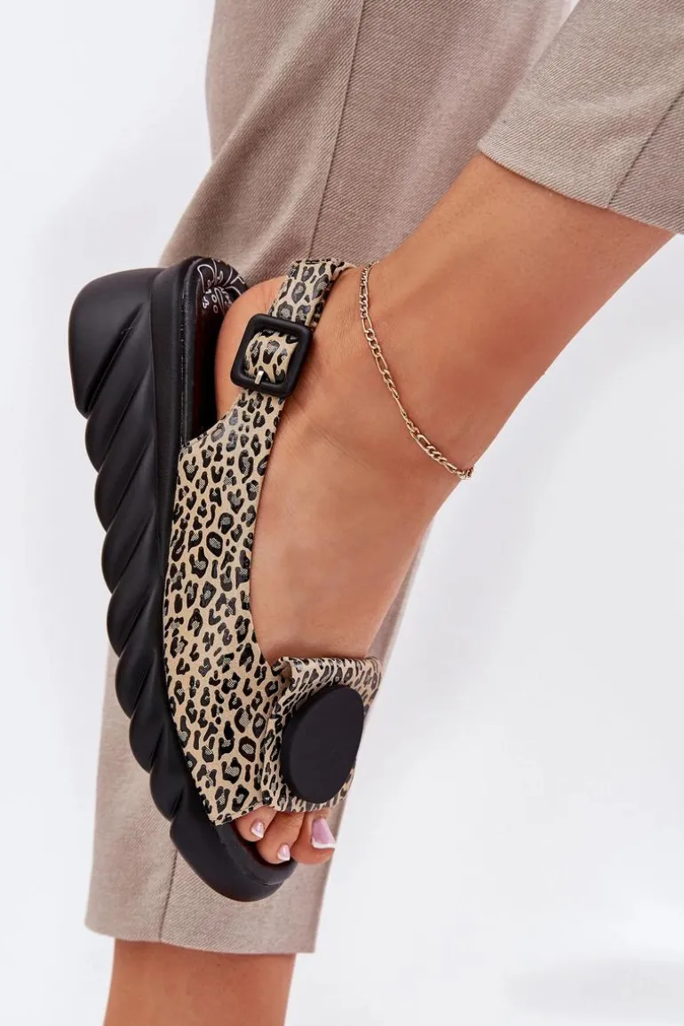 Eleganckie i stylowe sandały z naturalnej skóry to doskonały wybór na letnie dni. Osadzone na koturnie, zapewniają komfort i stabilność przez cały dzień. Z przodu znajduje się nowoczesna, geometryczna ozdoba, która dodaje im wyjątkowego charakteru. Zapinane na klamrę z regulowanym paskiem, pozwalają na idealne dopasowanie do stopy. Skórzana wkładka gwarantuje wygodę, czyniąc te sandały idealnym wyborem do letnich stylizacji. Przy wyborze rozmiaru prosimy sugerować się tabelą rozmiarów.