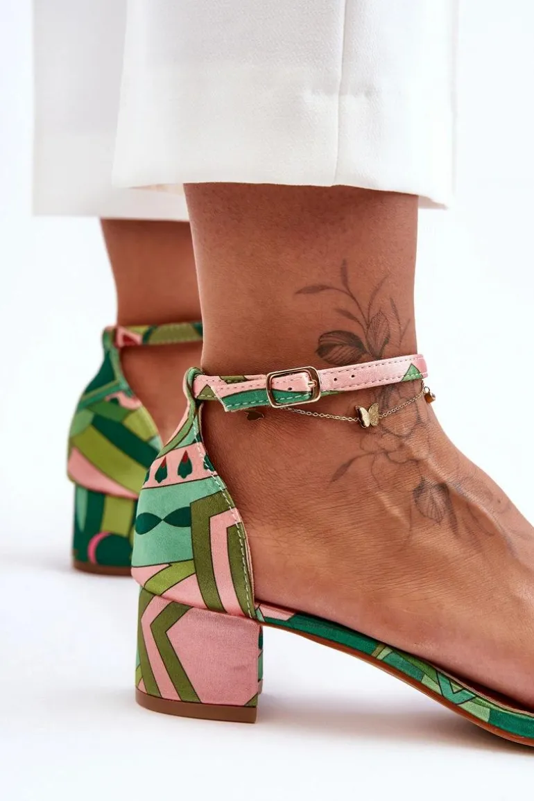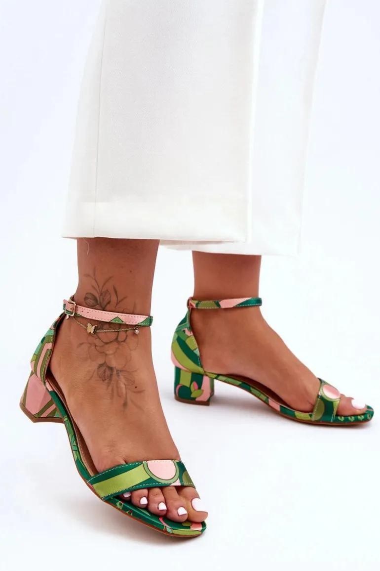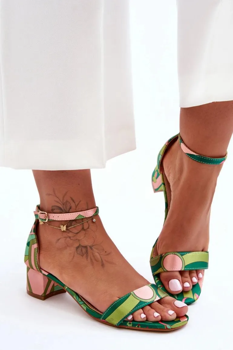 Satynowe Sandałki Na Obcasie We Wzory Zielony Mix Inspire Me!