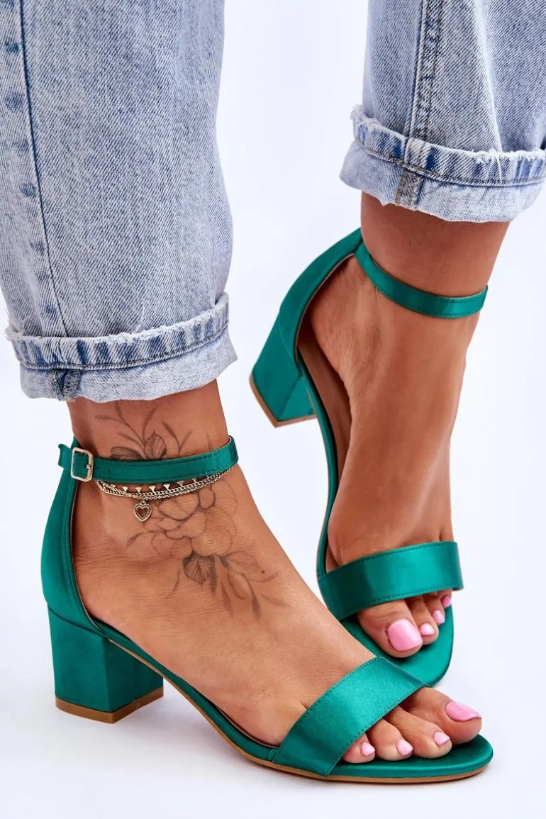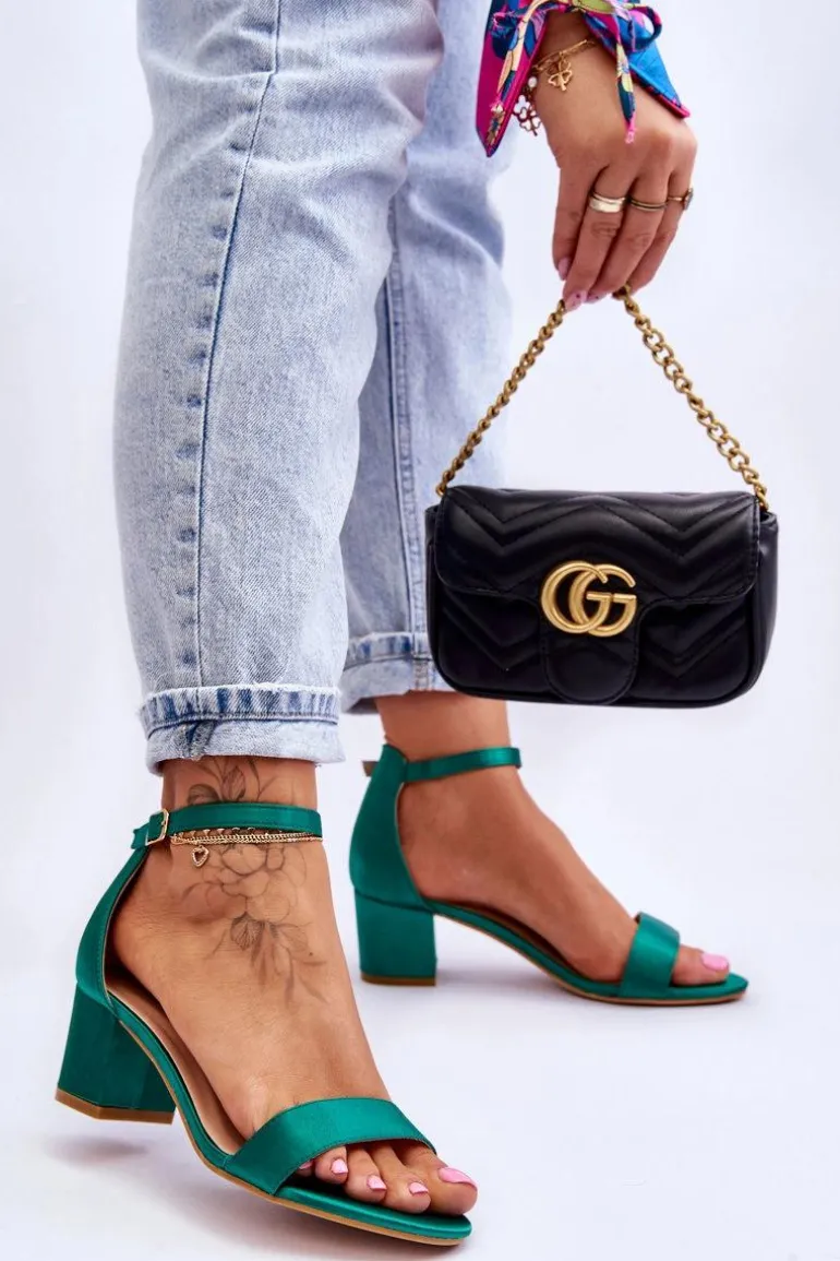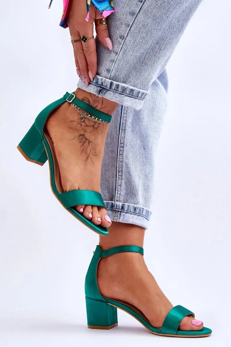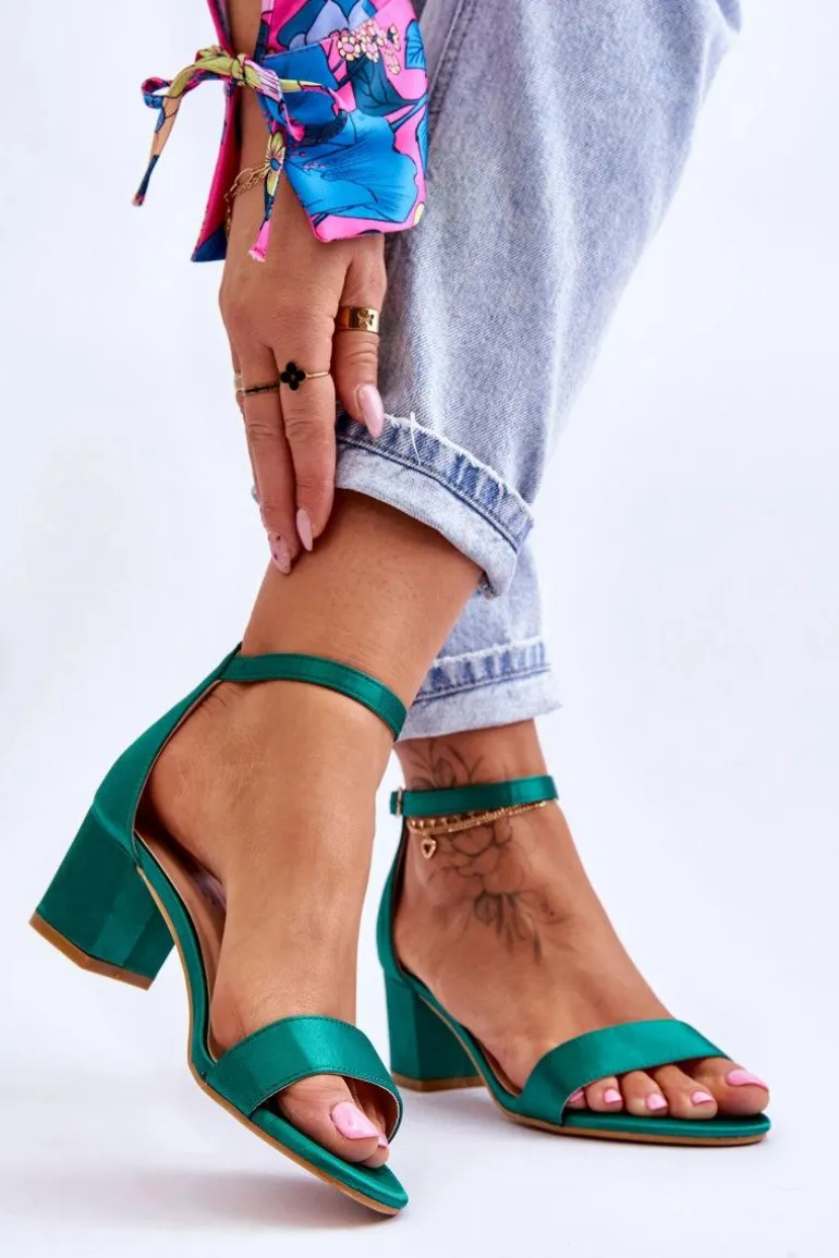 Satynowe Sandały Na Niskim Obcasie Zielone Juliet