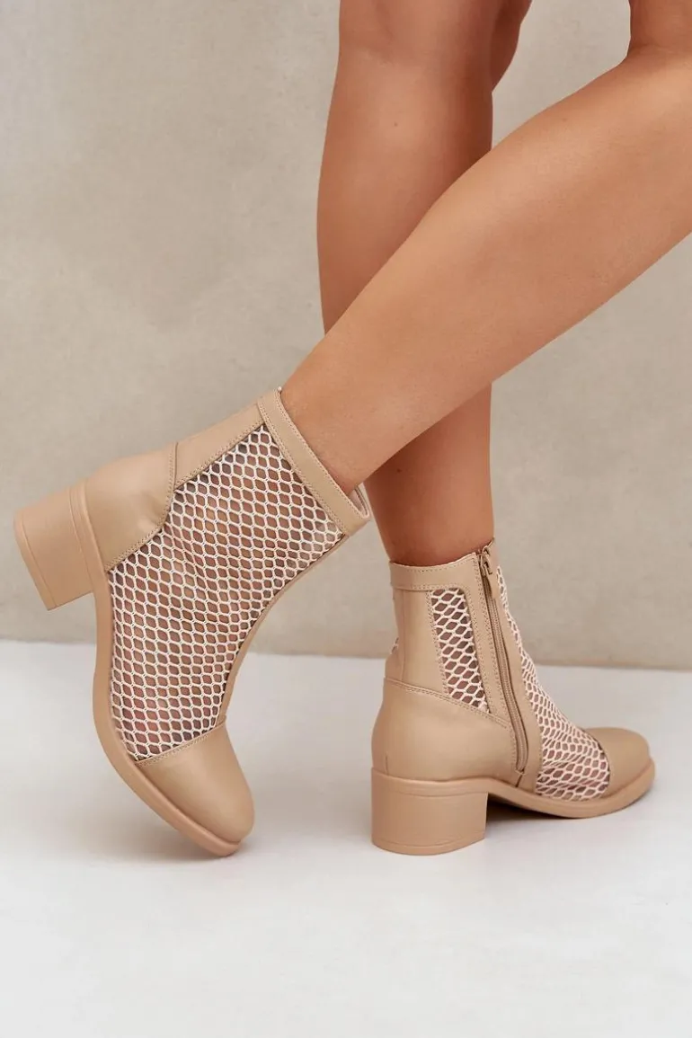 Siateczkowe botki damskie to modna i przewiewna propozycja na cieplejsze dni. Osadzone na niskim obcasie, zapewniają wygodę i stabilność, a zaokrąglone noski gwarantują komfort noszenia. Zapinane na zamek, co ułatwia ich zakładanie i zdejmowanie. Siateczkowa cholewka dodaje lekkości i unikalnego charakteru, sprawiając, że są idealnym wyborem do casualowych i bardziej eleganckich stylizacji. Te botki łączą funkcjonalność z modnym wyglądem, świetnie komponując się w wiosennych i letnich outfitach. Przy wyborze rozmiaru prosimy sugerować się tabelą rozmiarów.