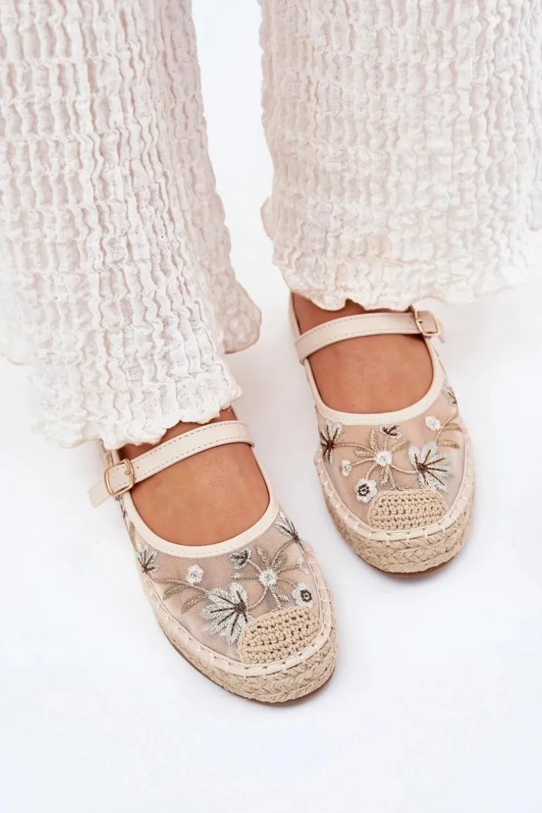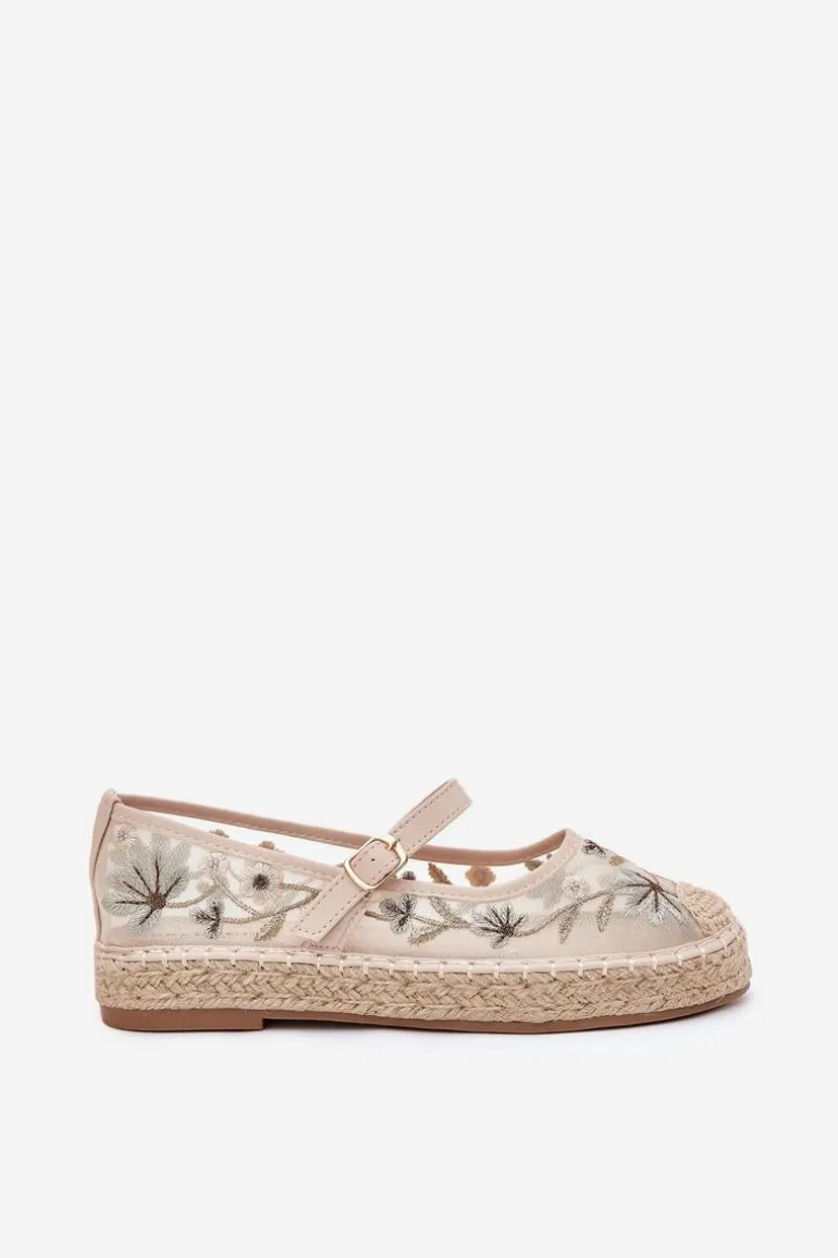 Siateczkowe Espadryle Z Haftem Na Platformie Beżowe Laxisa
